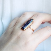 珍しいカットの石が使用され、個性的な縦長デザインがお洒落です。