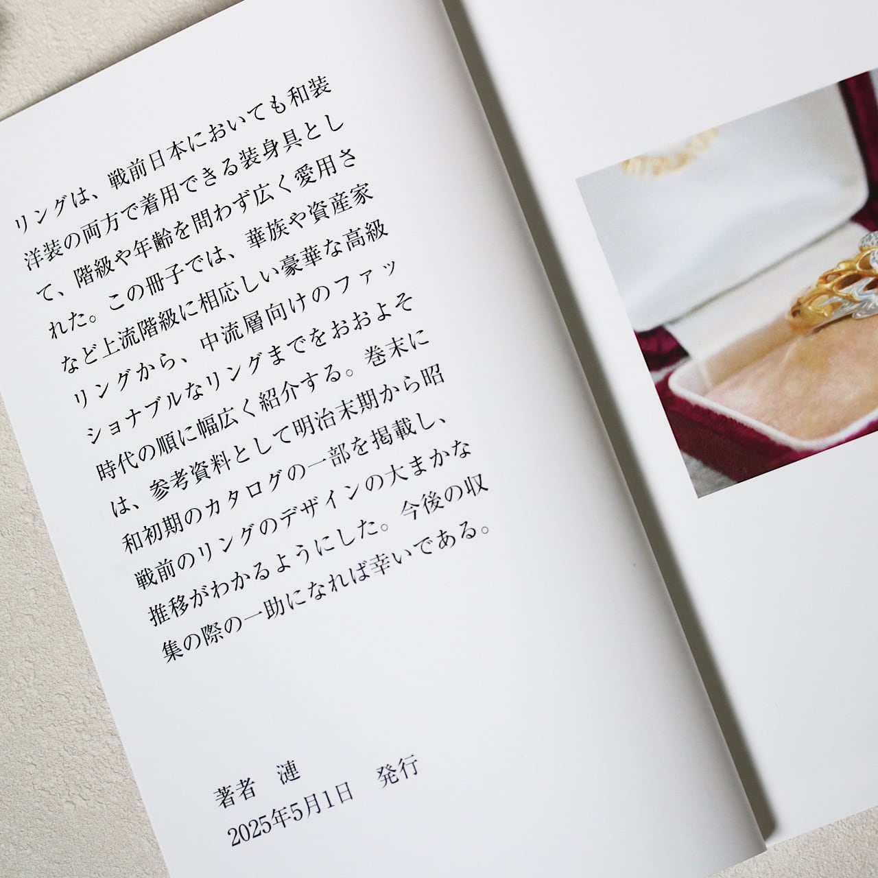 また、リングや刻印のお写真と共に簡潔な解説が掲載されていますので、戦前リングの特徴や当時の流行を感じられる、大変勉強にもなる一冊となっております。