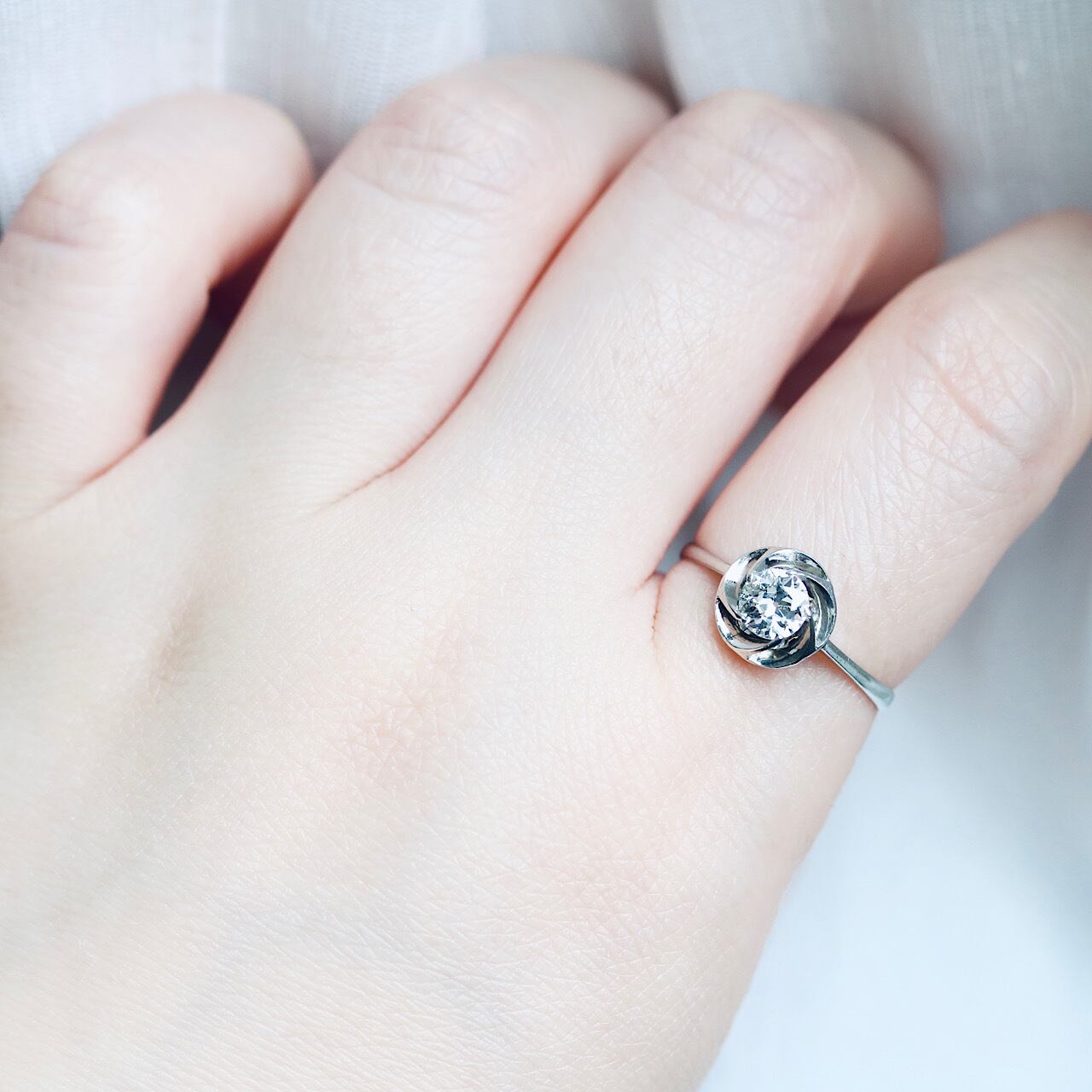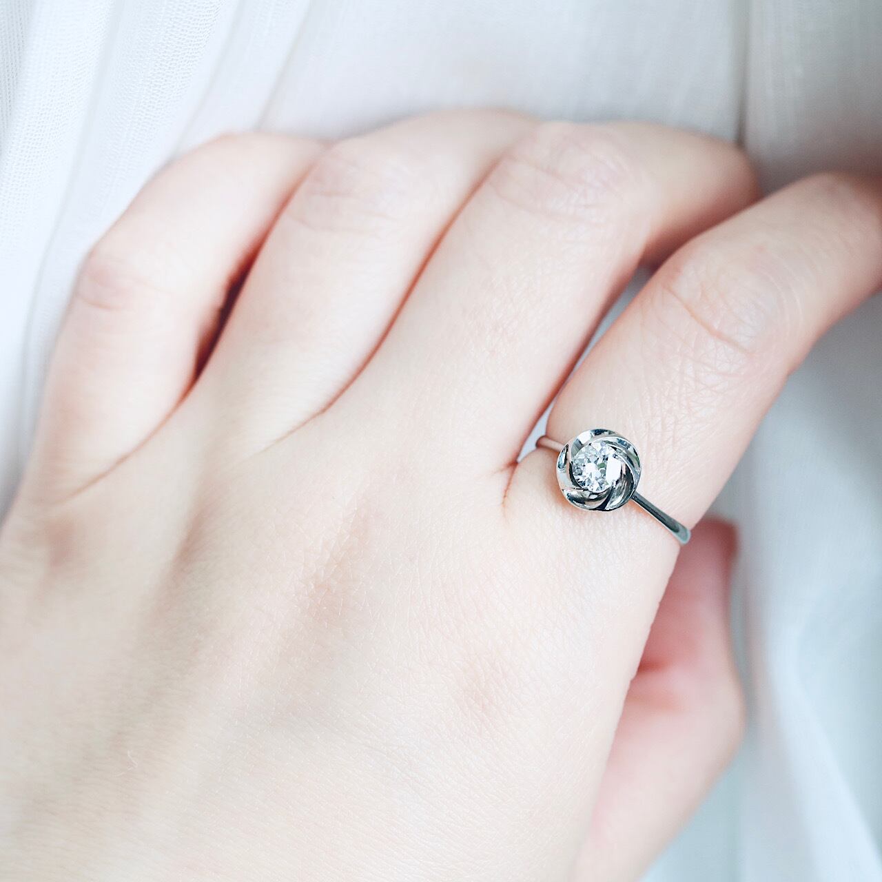 日本独自のデザインである捻り梅のシンプルなダイヤモンドリング。