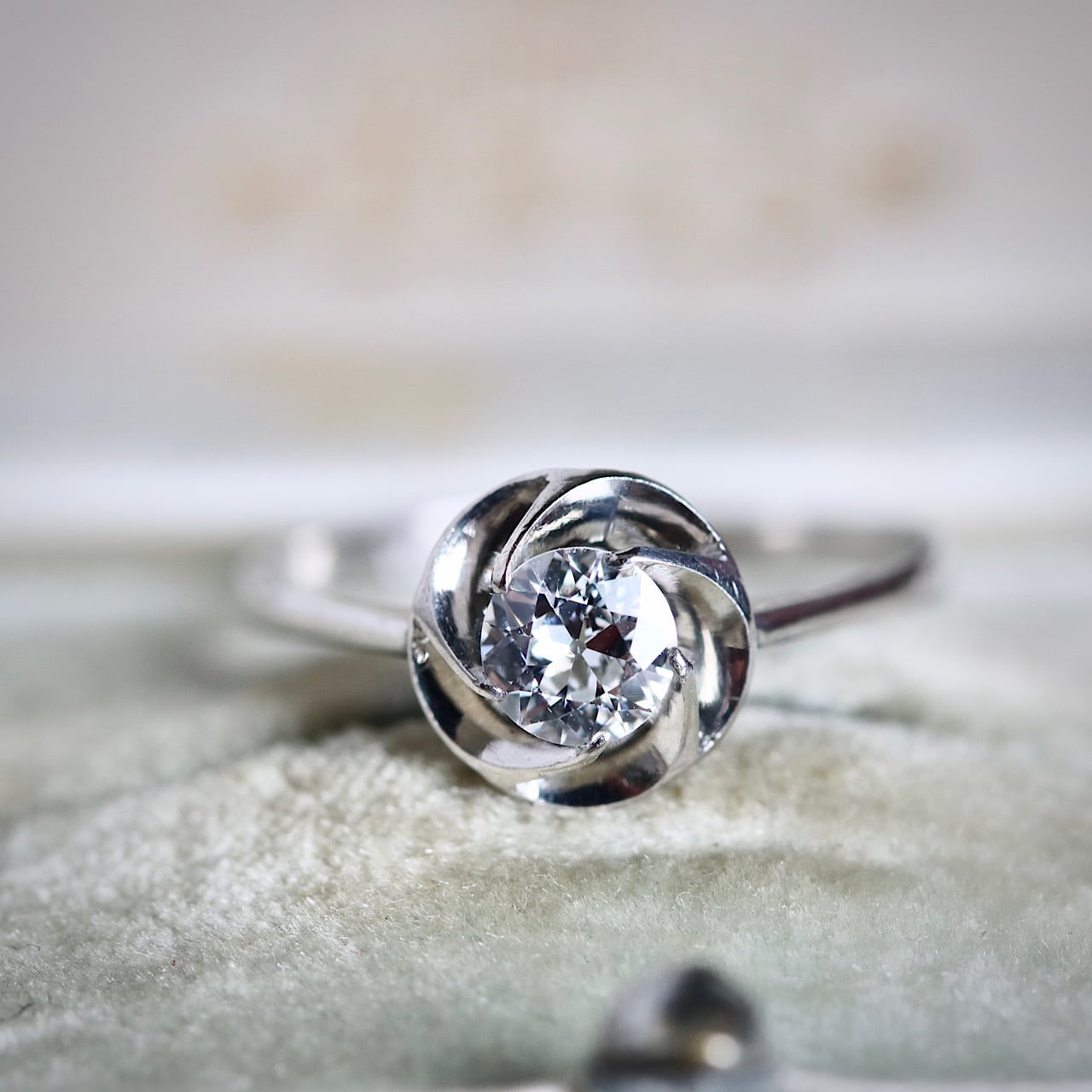 【貴重】PLATINAM刻印 プラチナ製 オールドヨーロピアンカットダイヤモンドの捻り梅リング 大正〜昭和初期頃