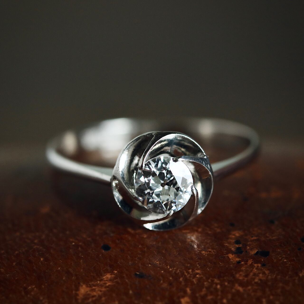 PLATINAM刻印 プラチナ製 オールドヨーロピアンカットダイヤモンドの捻り梅リング。
