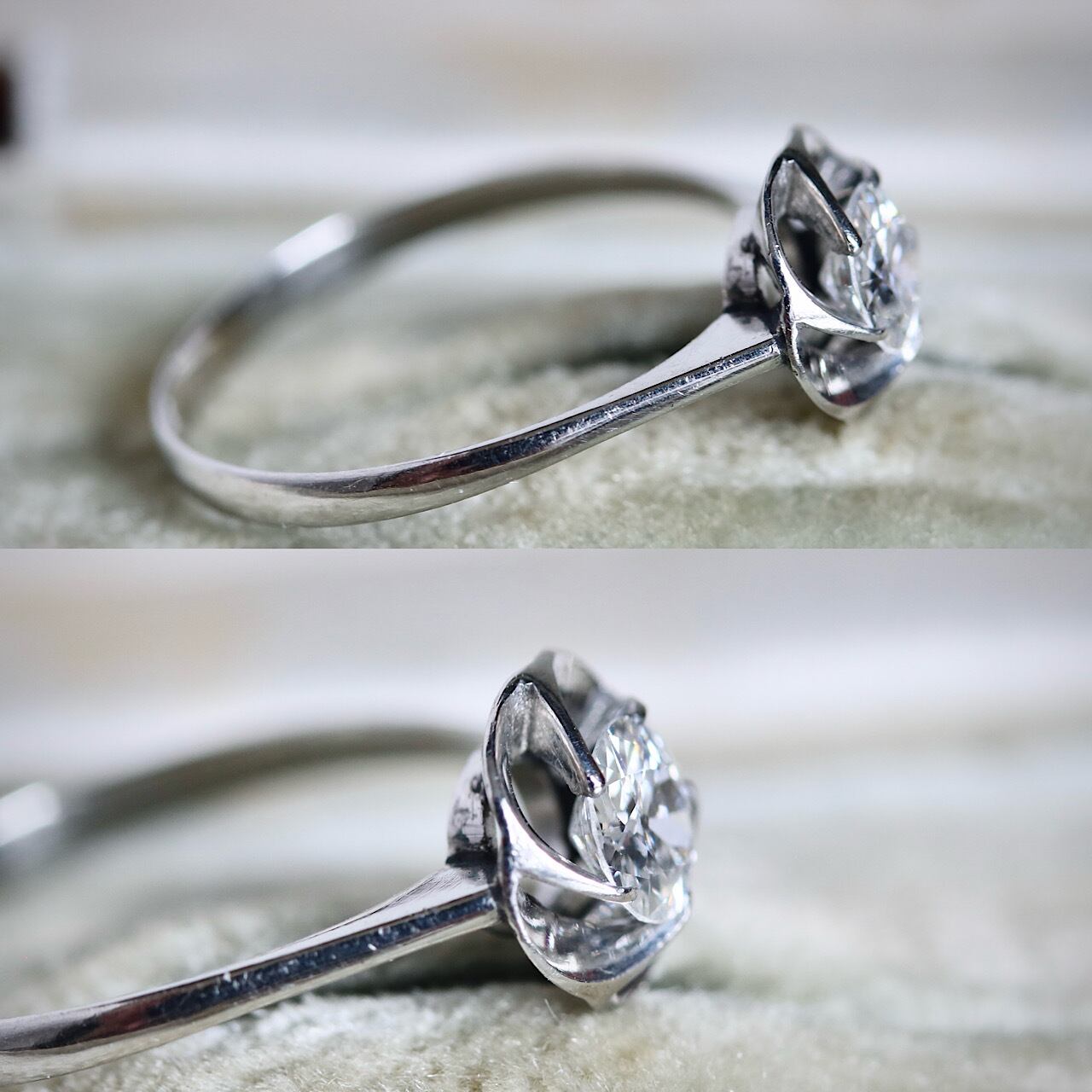 こちらは透明感のある美しいダイヤモンドが使われており、オールドカットならではのうるうるとした煌めきが感じられます。