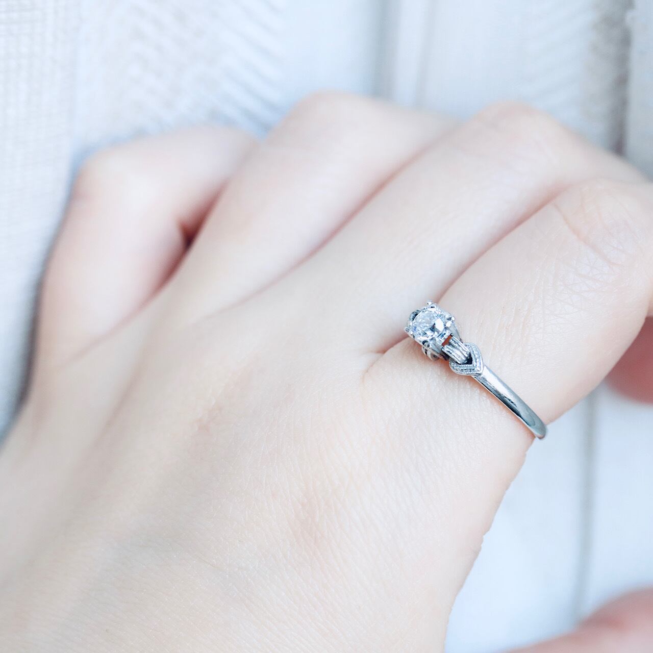 ヴィンテージリングらしく繊細な造りのリングですが、強度のあるプラチナとダイヤモンドのリングですので、普段使いにも安心して着用できるお品です。
