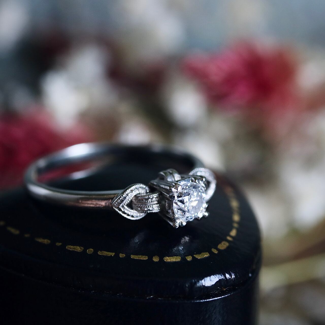 Pt プラチナ製 一粒ダイヤモンドのソリテール ヴィンテージリング。