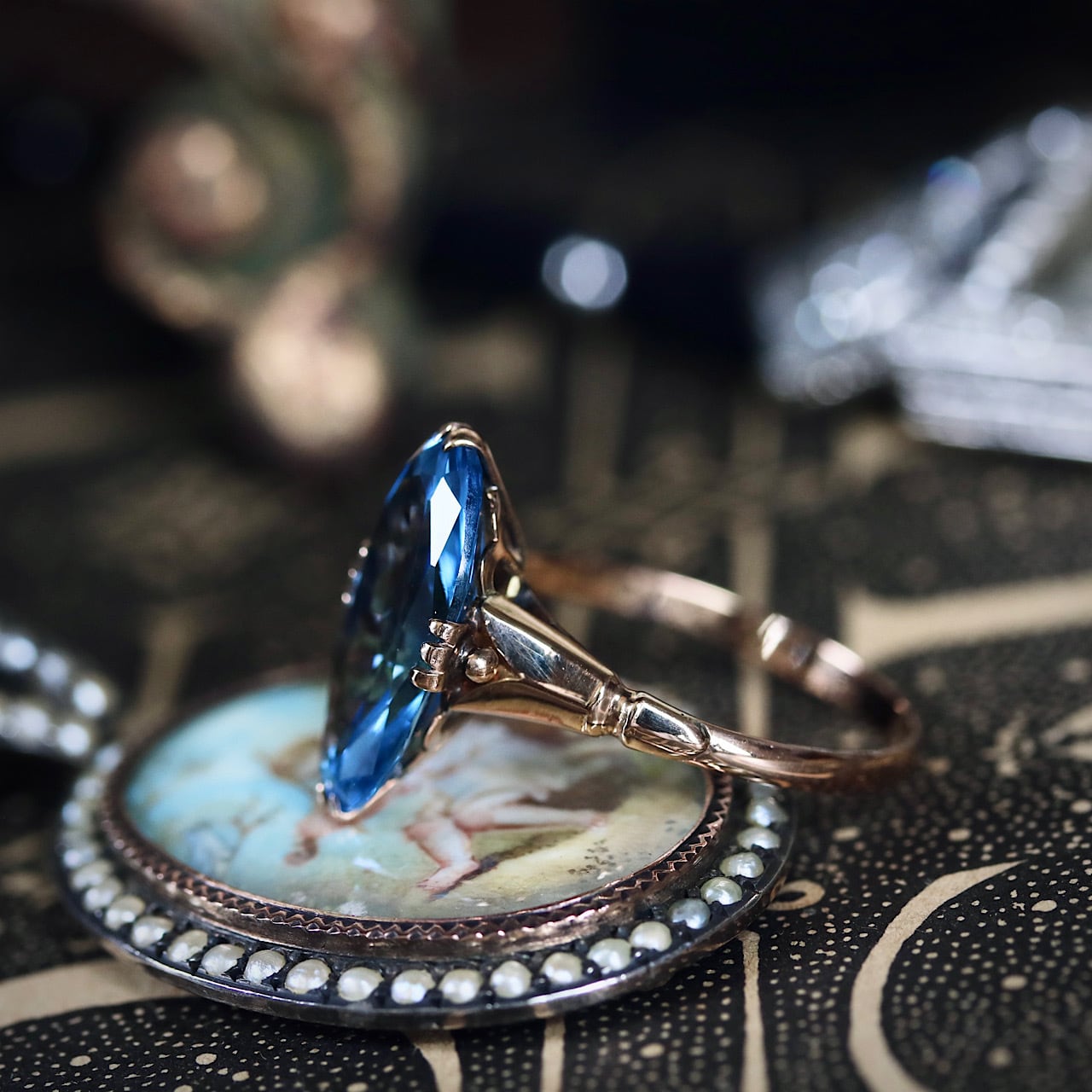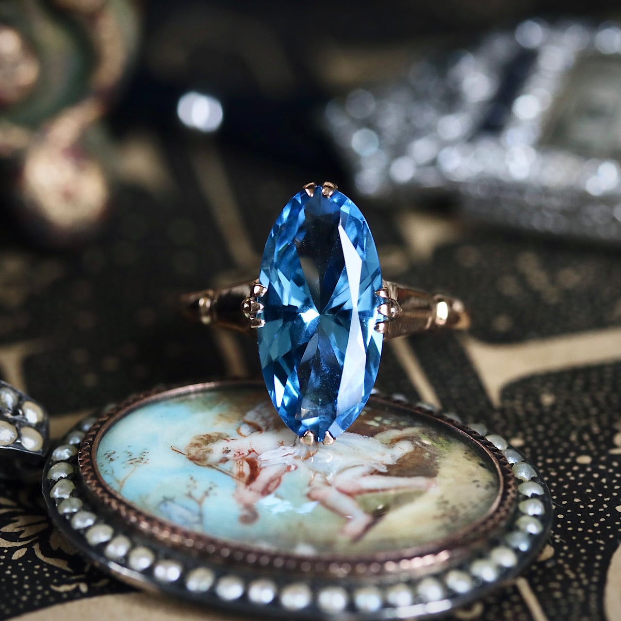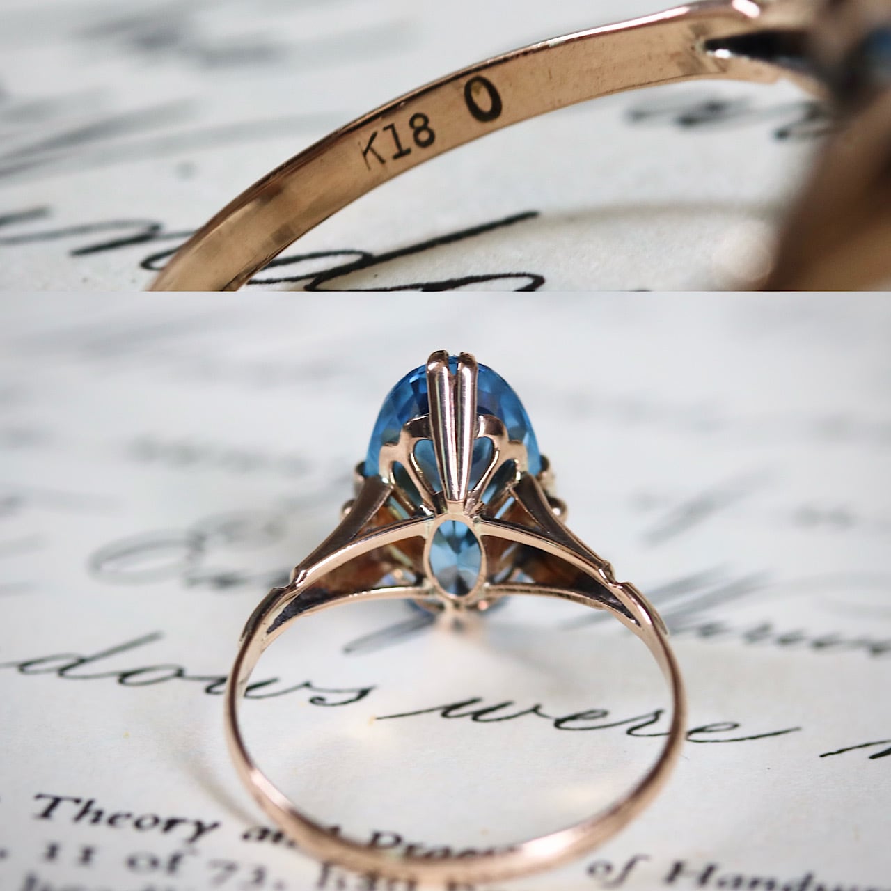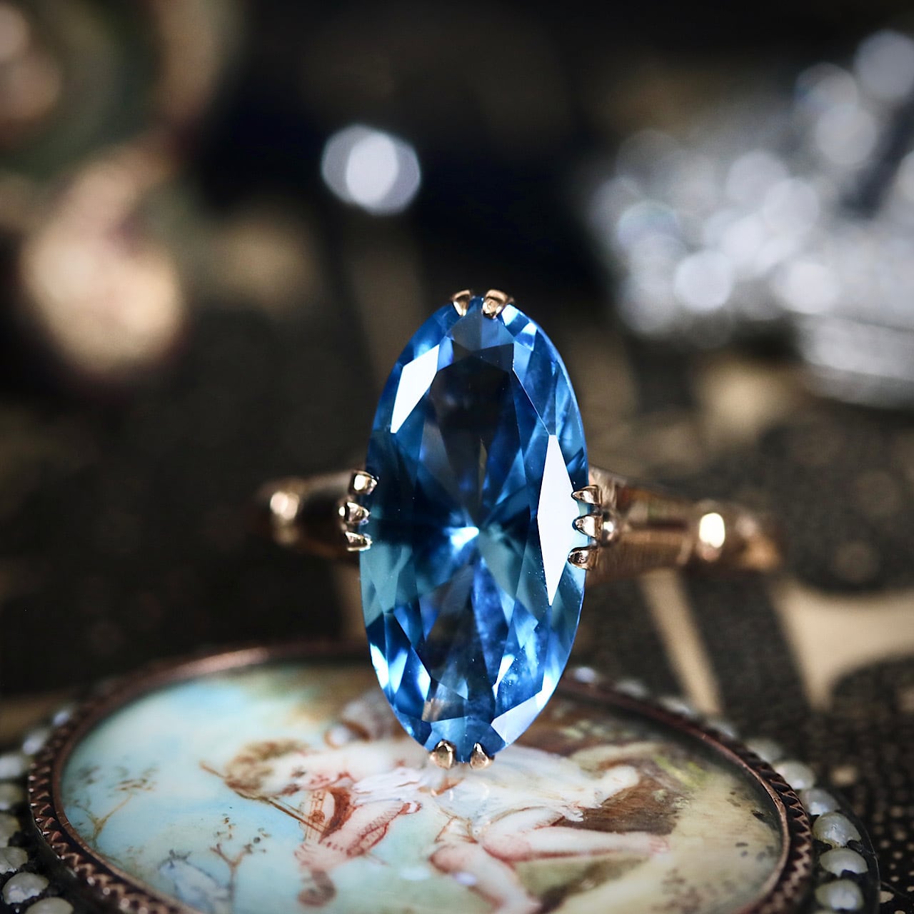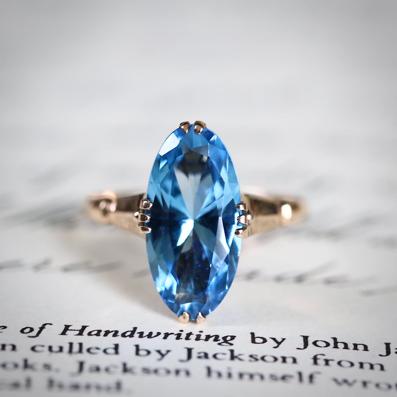 吸い込まれるような美しいブルー色の合成スピネルが魅力的なヴィンテージリング。