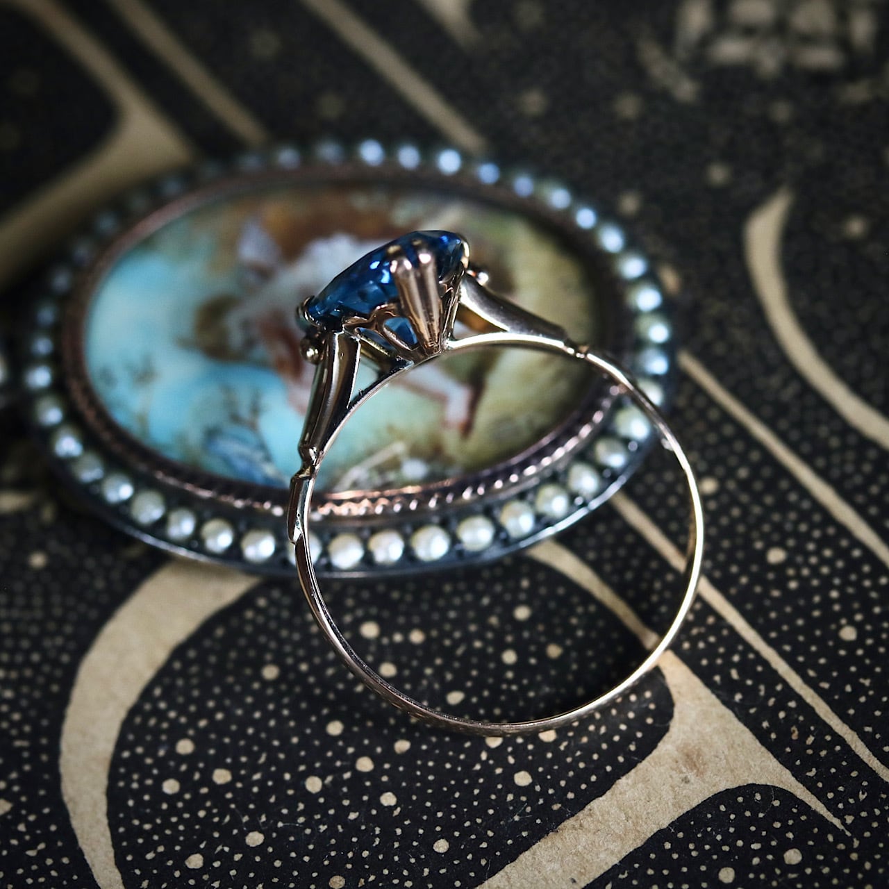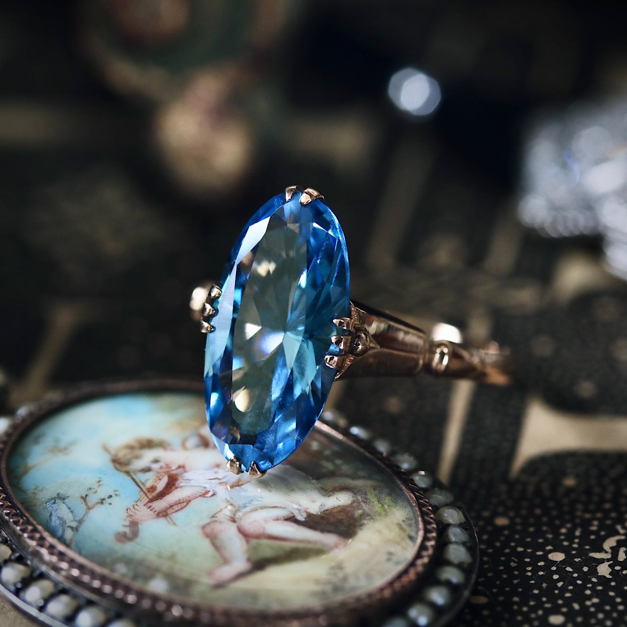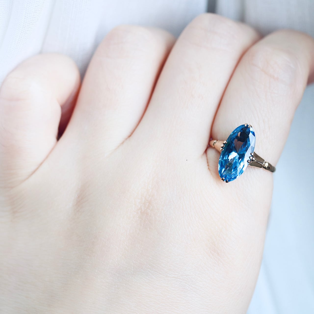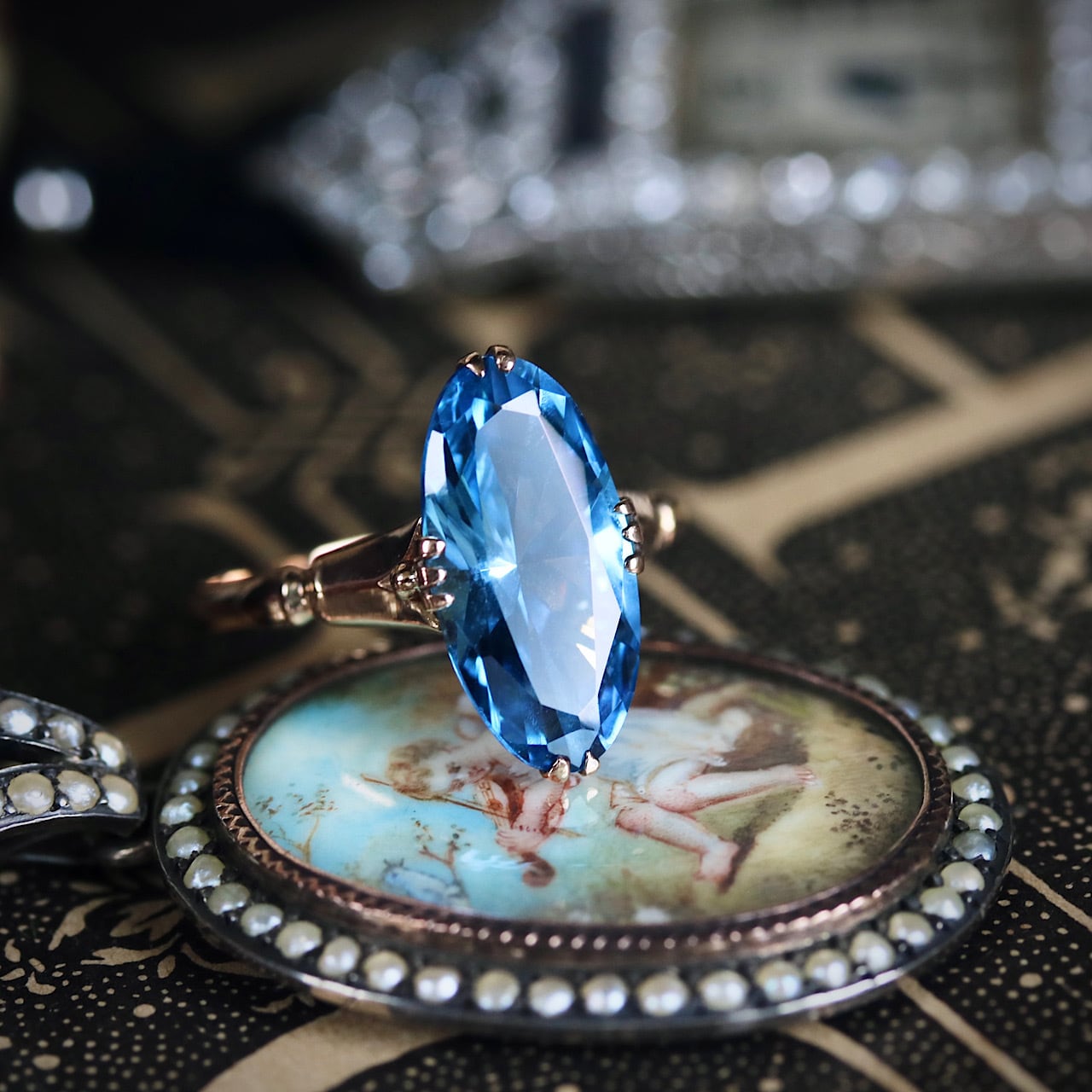 吸い込まれるような美しいブルー色の合成スピネルが魅力的なヴィンテージリング。