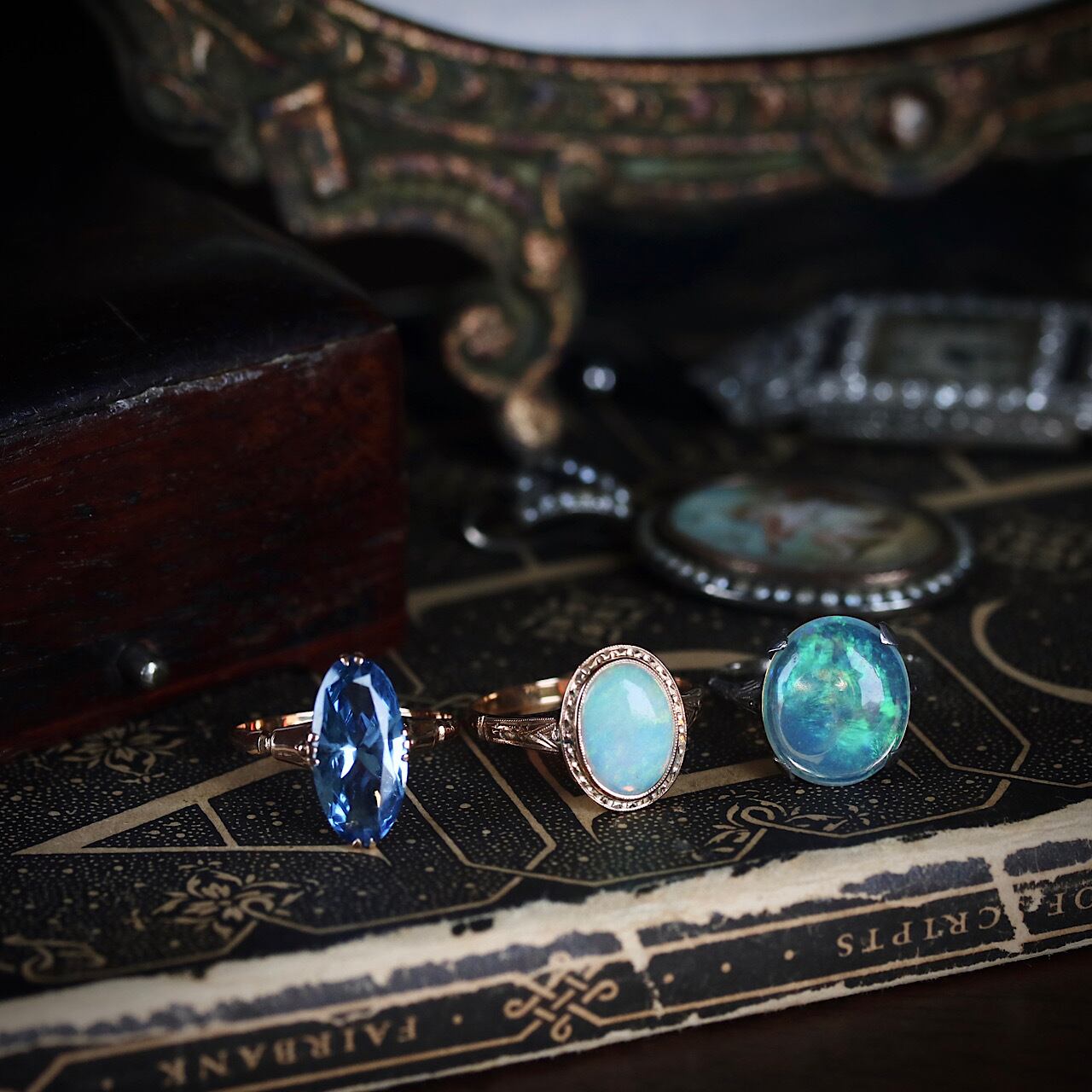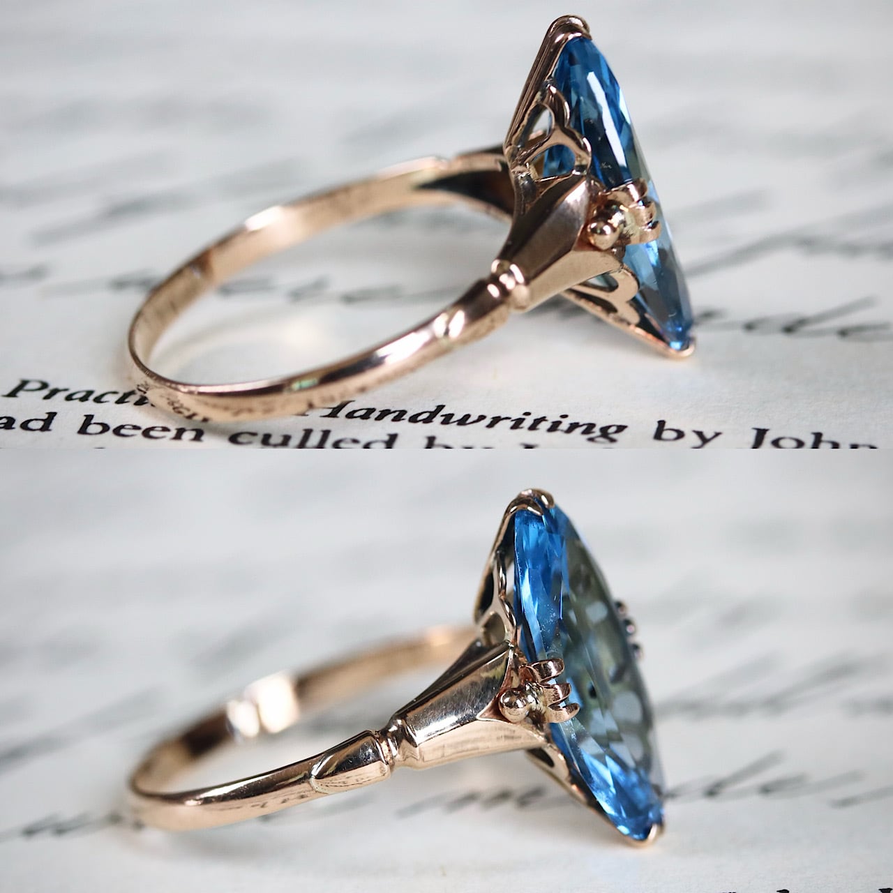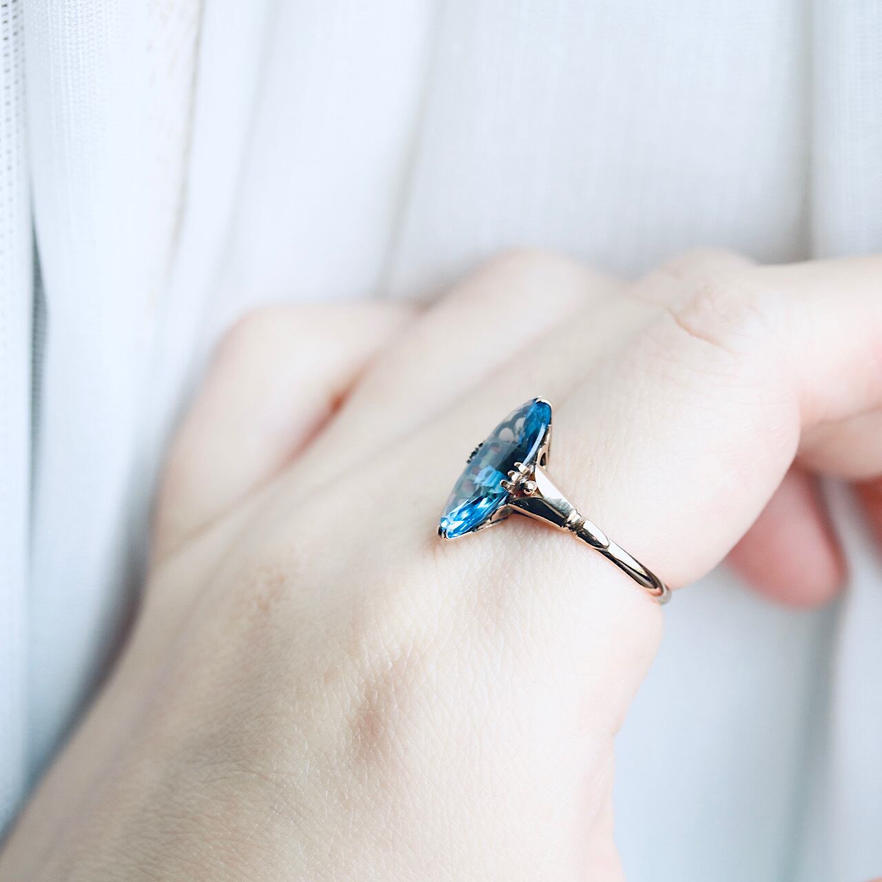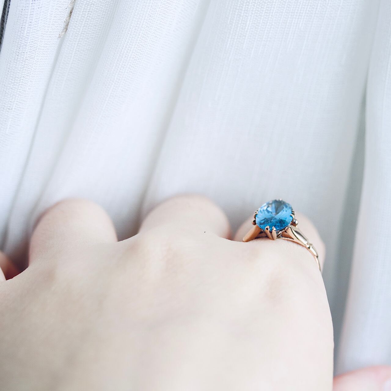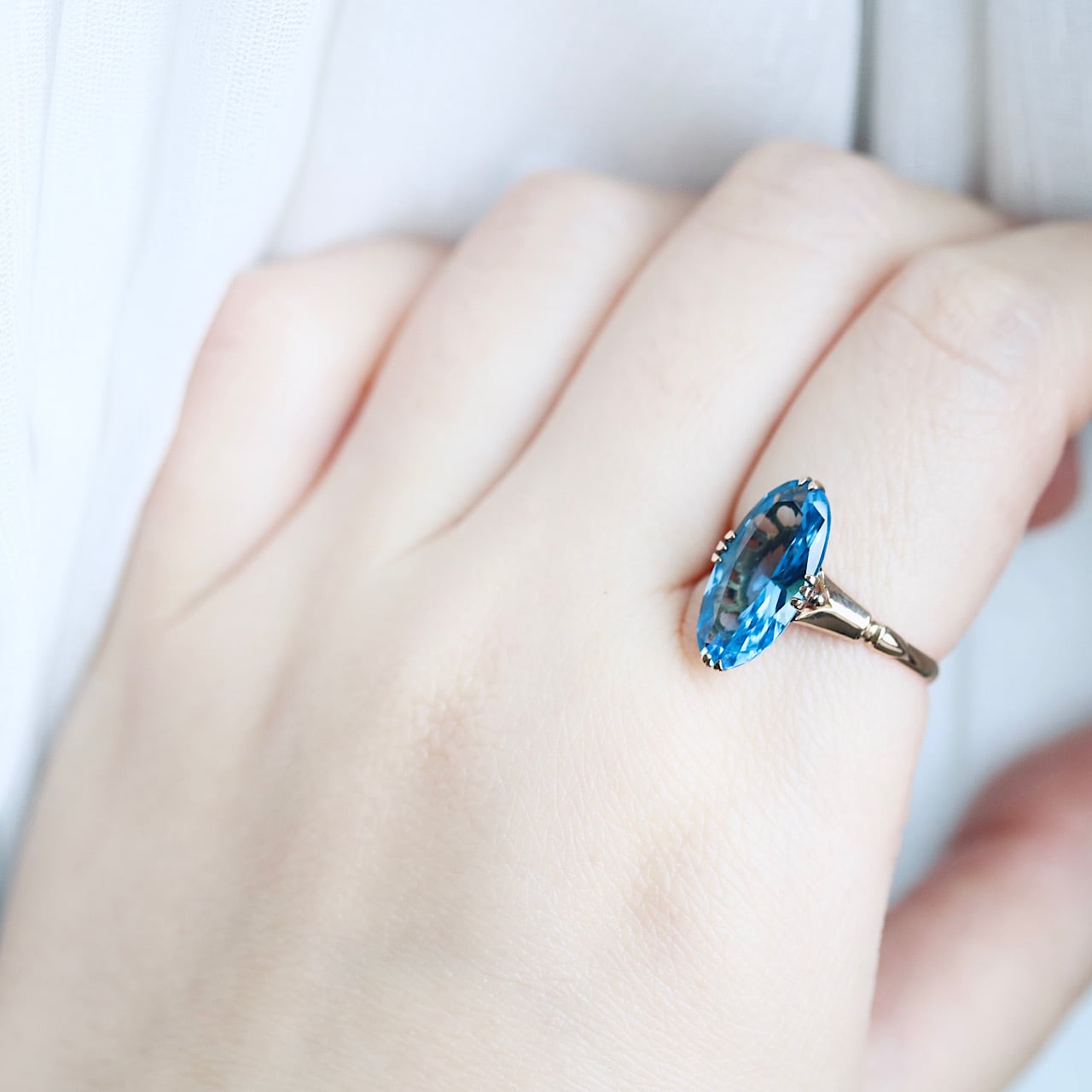 吸い込まれるような美しいブルー色の合成スピネルが魅力的なヴィンテージリング。