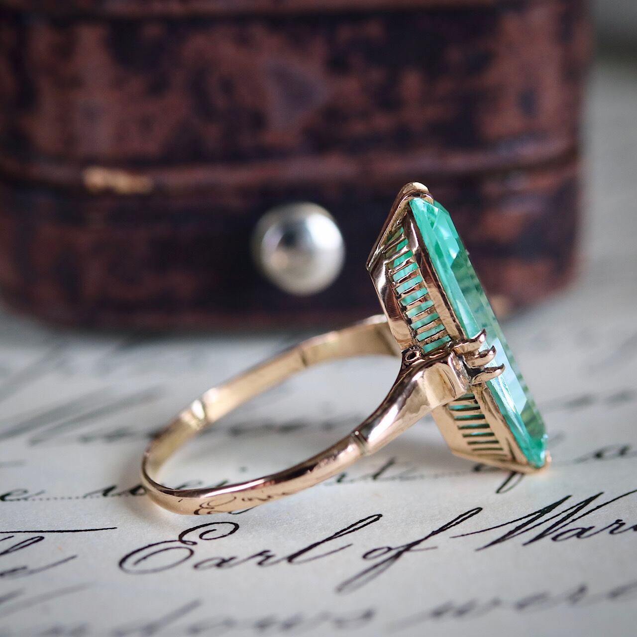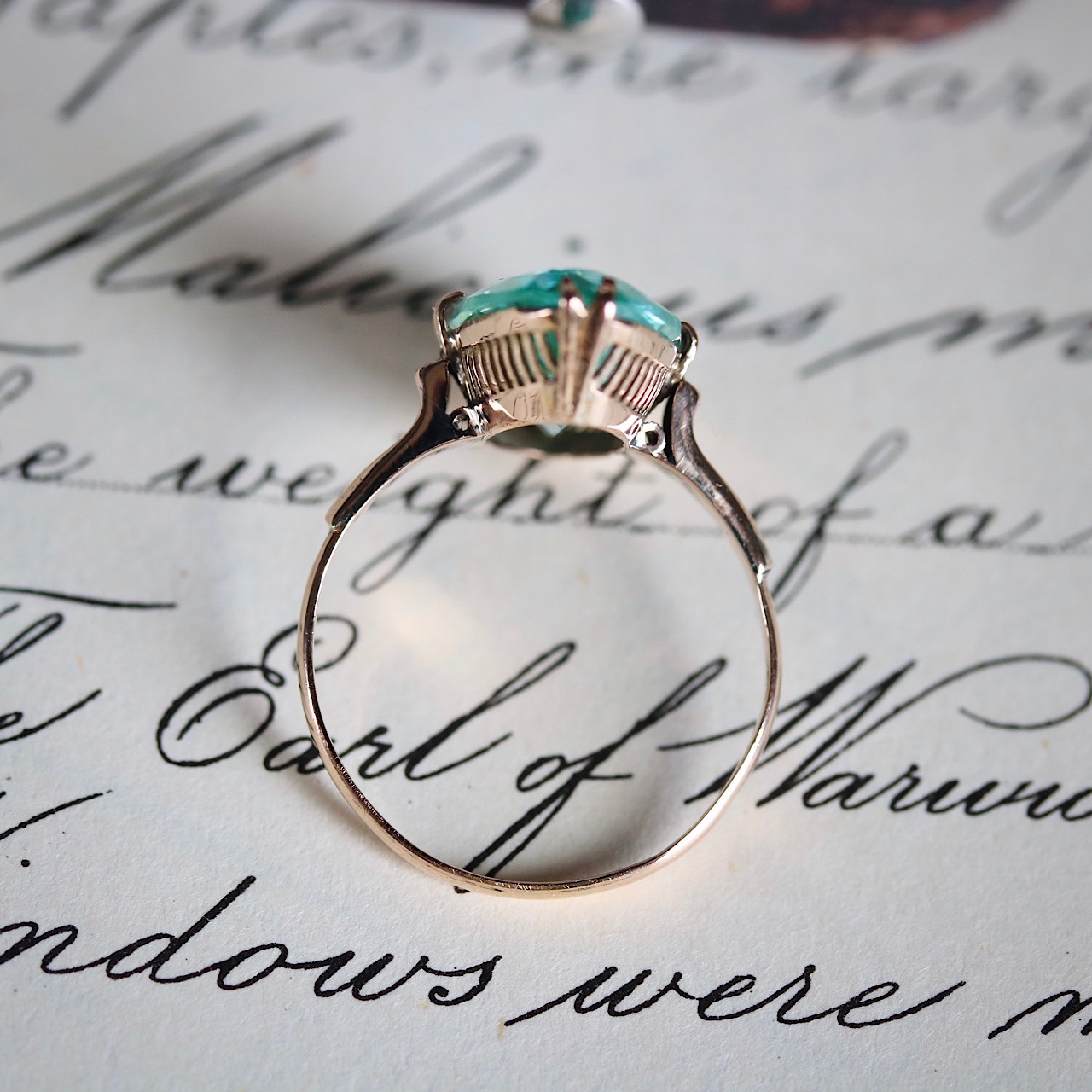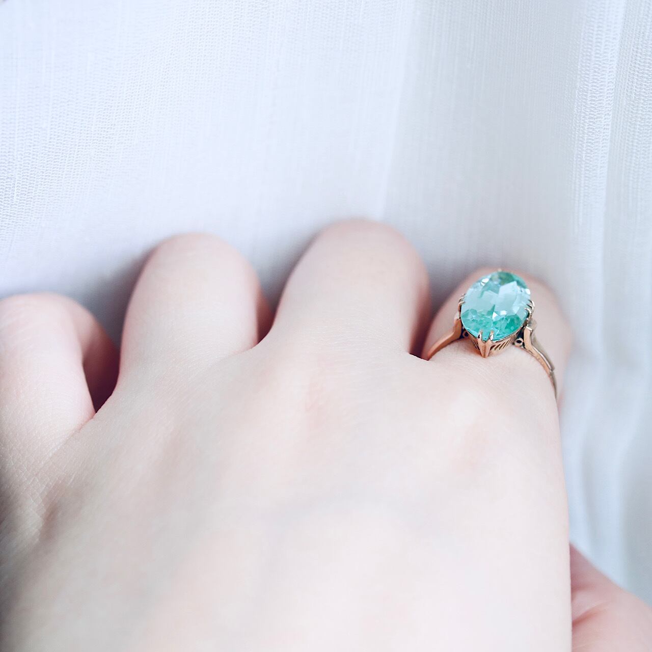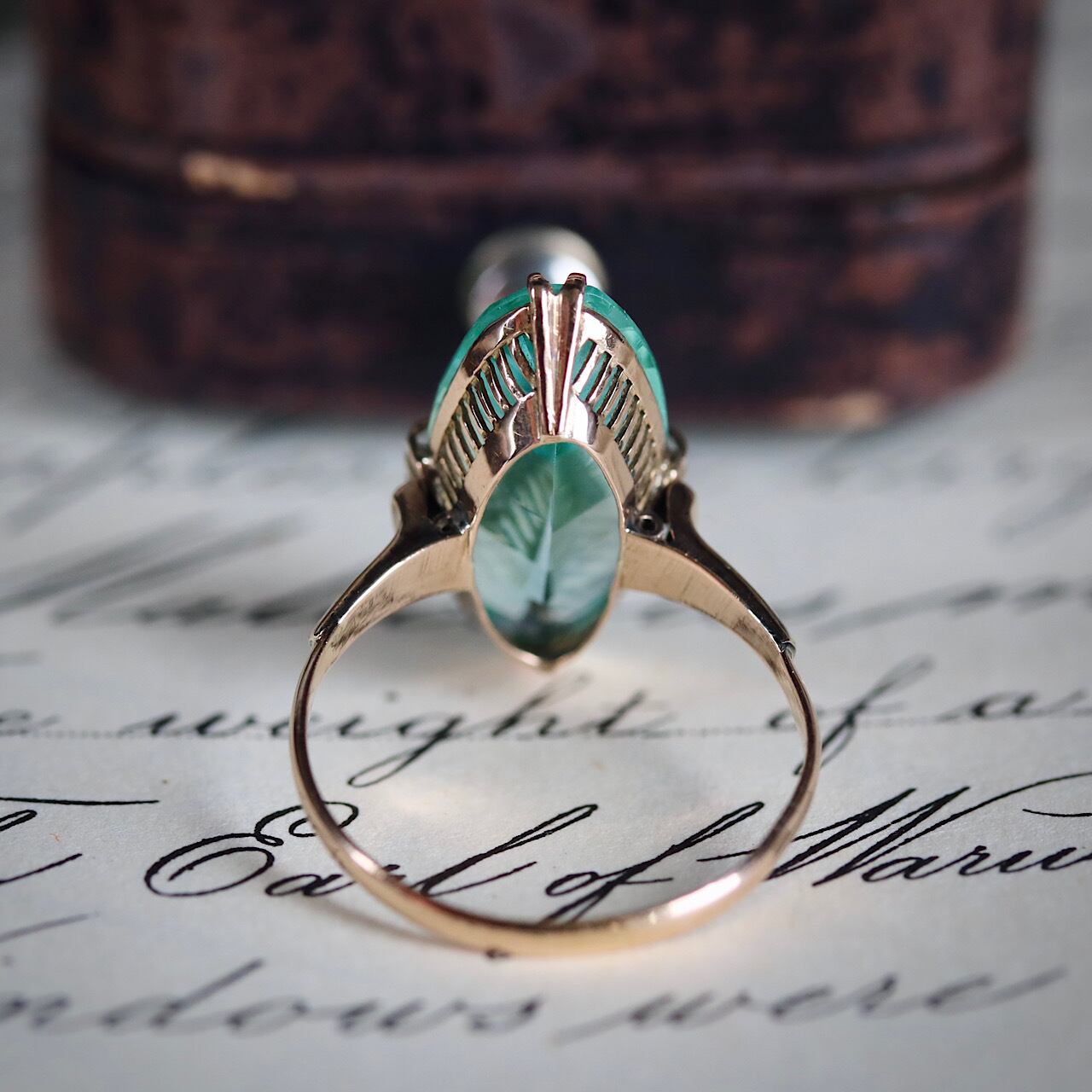 K18 エリナイト(合成ミントグリーンスピネルの千本透かしヴィンテージリング。