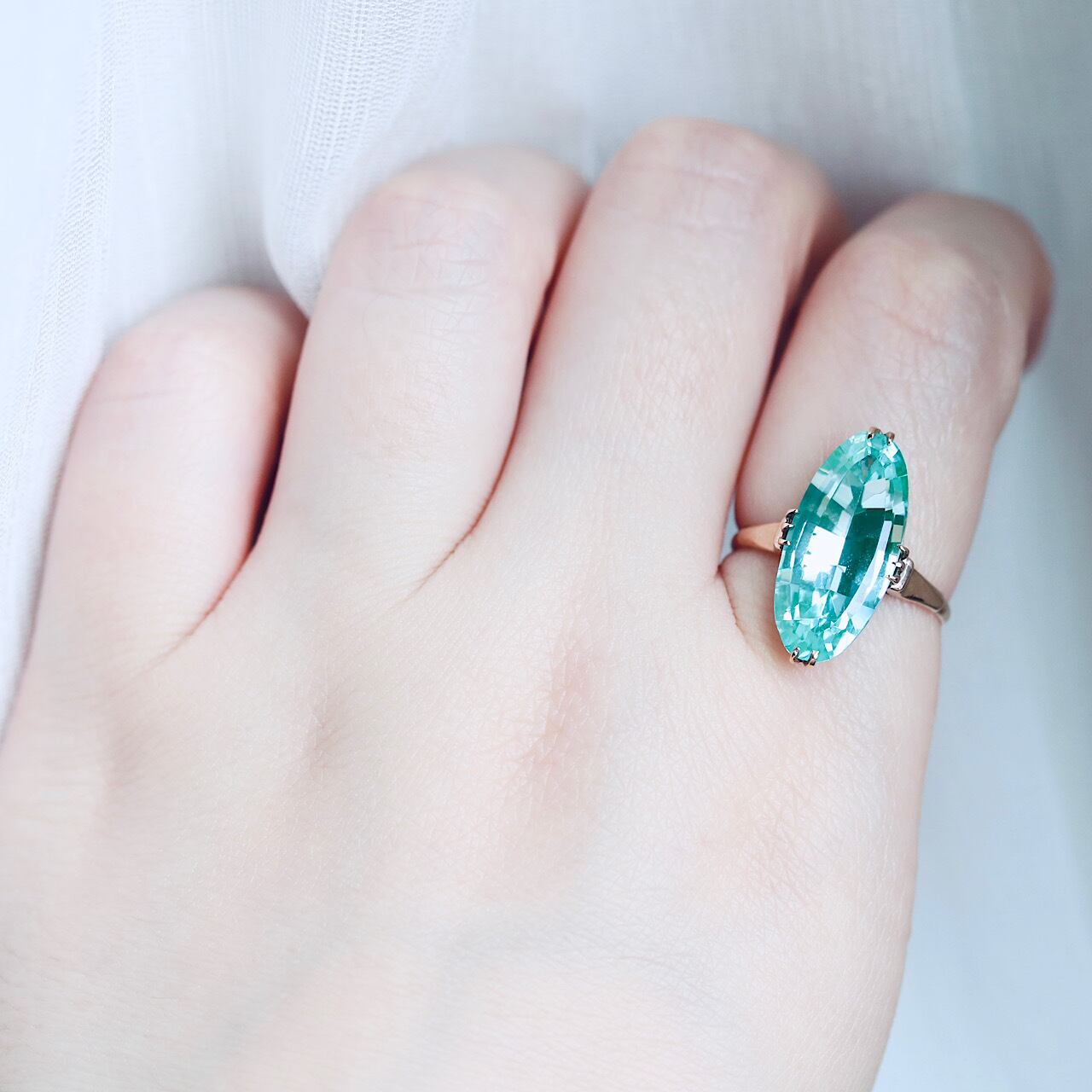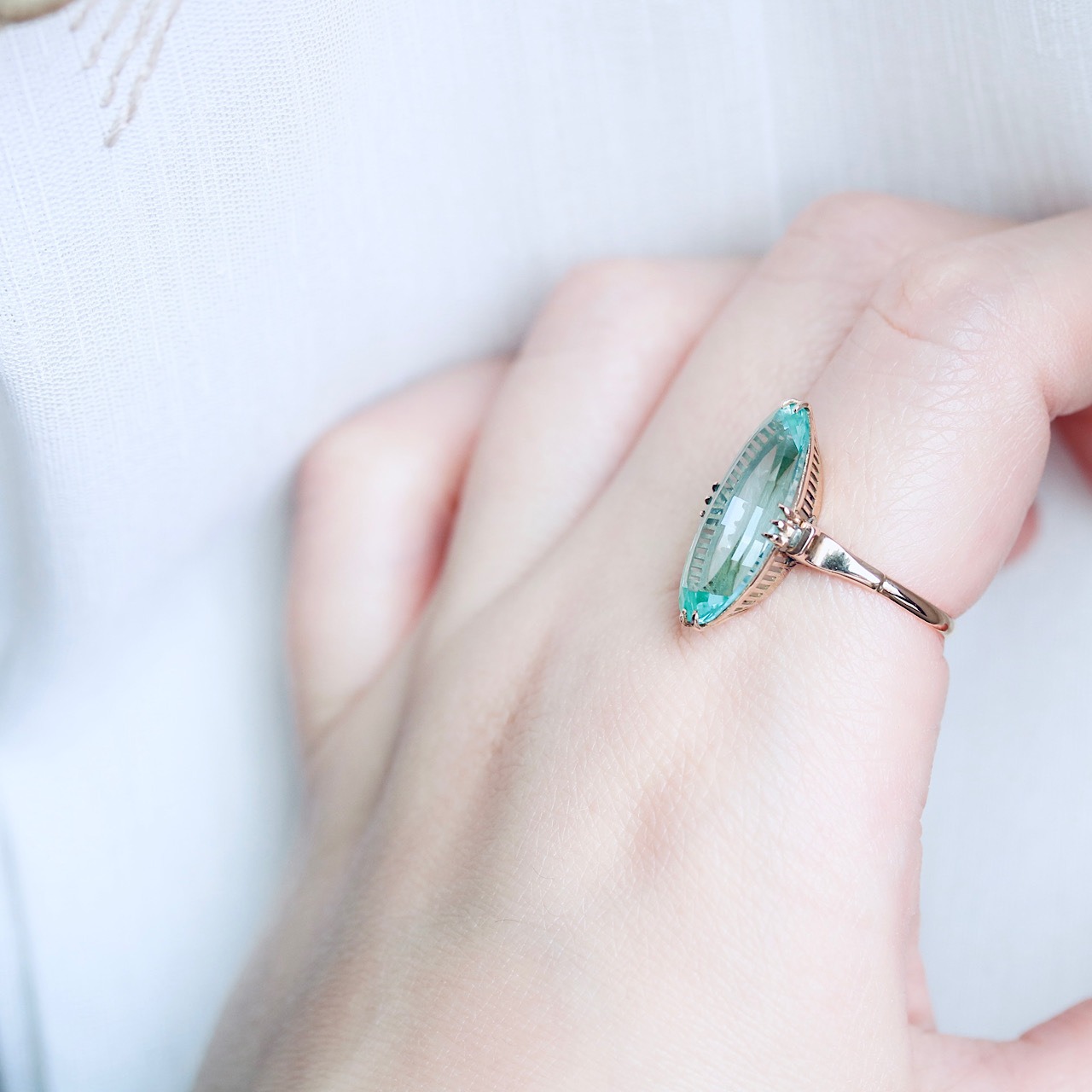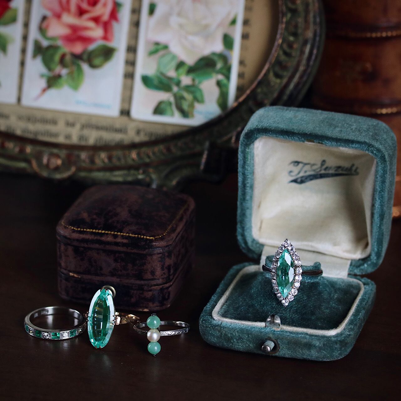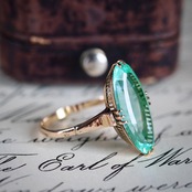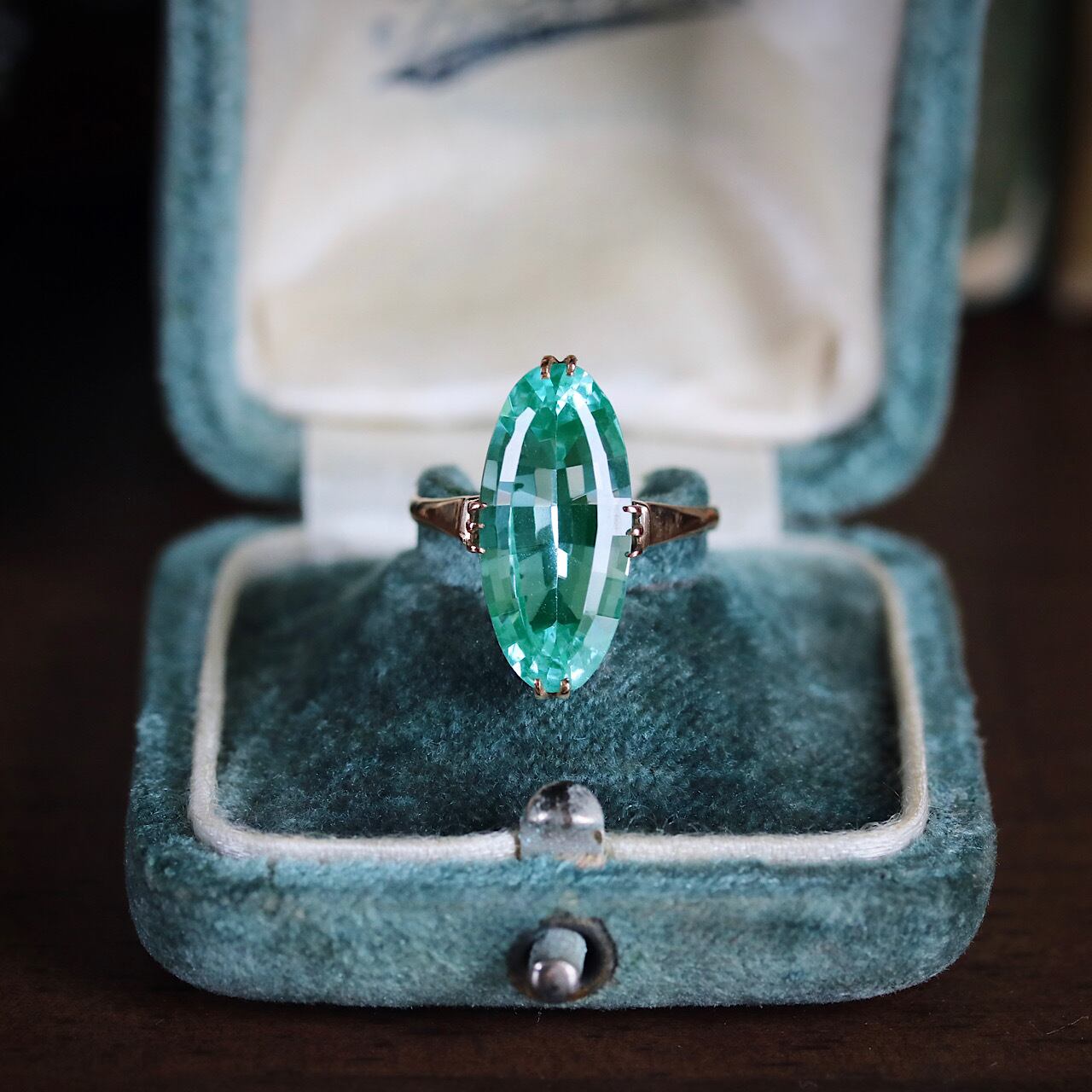 K18 エリナイト(合成ミントグリーンスピネルの千本透かしヴィンテージリング。