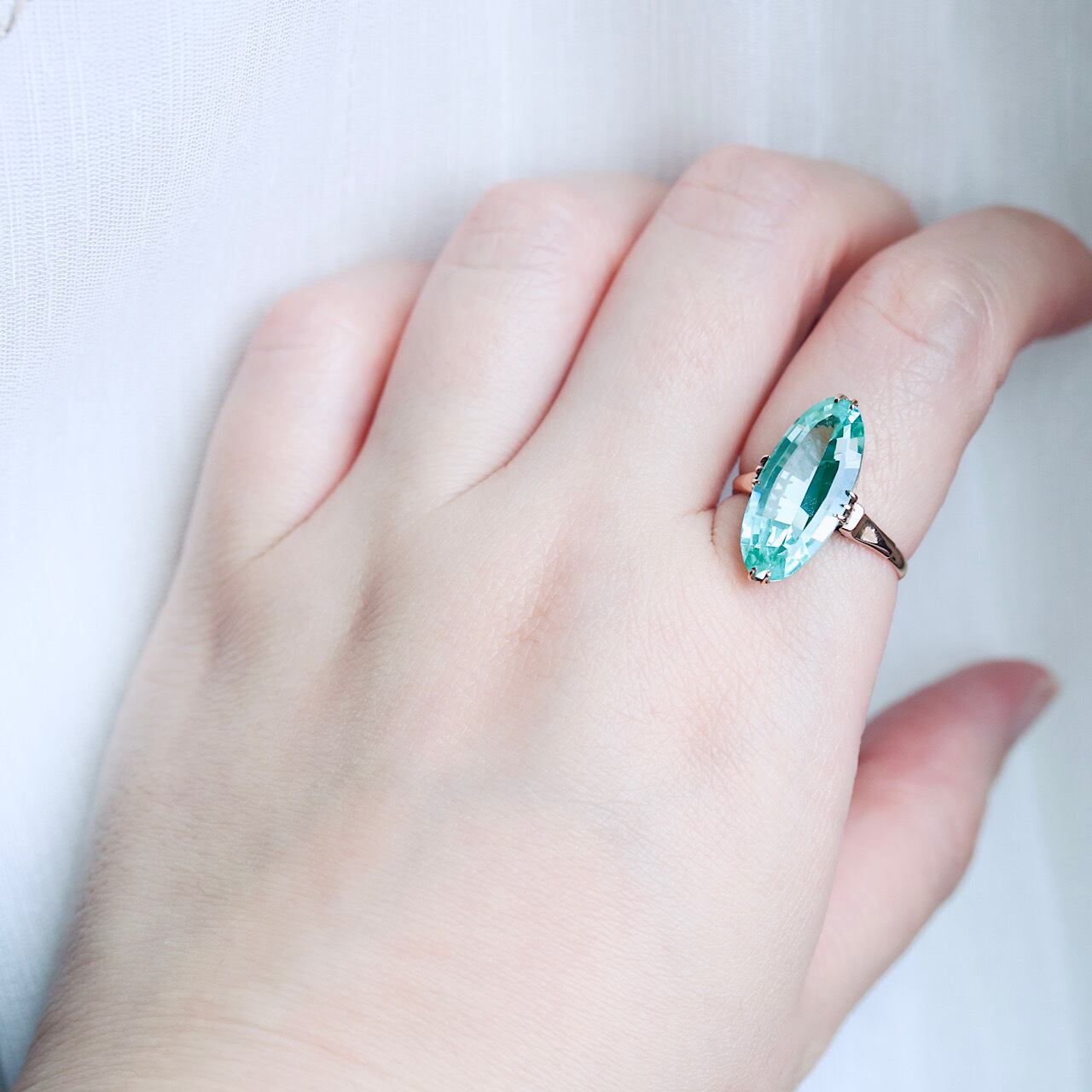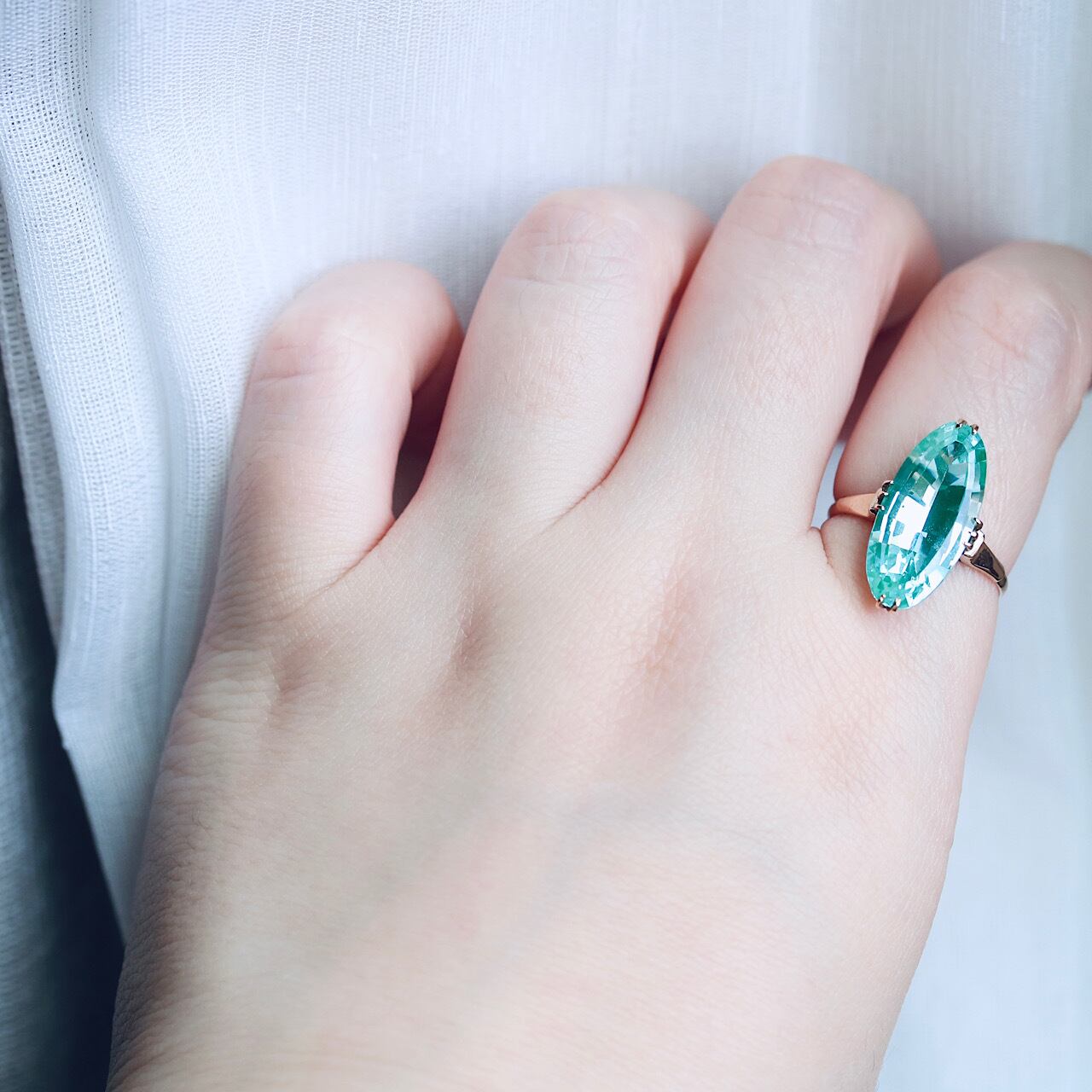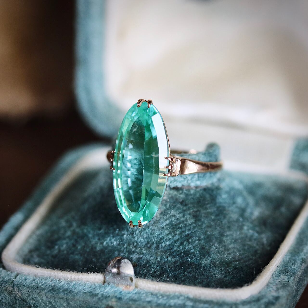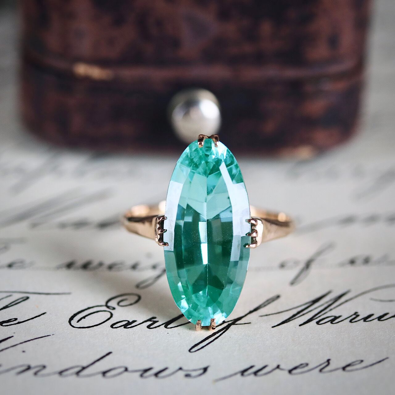 K18 エリナイト(合成ミントグリーンスピネルの千本透かしヴィンテージリング。