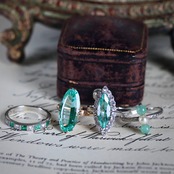 翡翠は小粒ながらも艶々としていて、すっきりとした色味のアップルグリーンカラー。