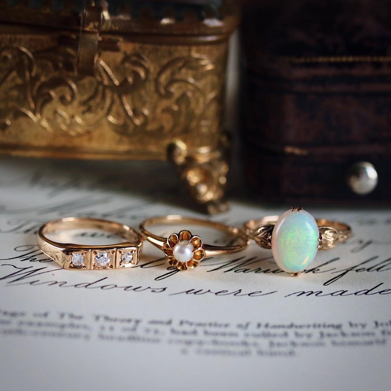 美しい天然オパールと繊細な彫金の組み合わせが上品な女性らしいリング。