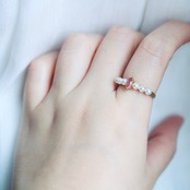 中心の天然ピンクトルマリンは、優しいピンクカラーで女性らしい色合い。