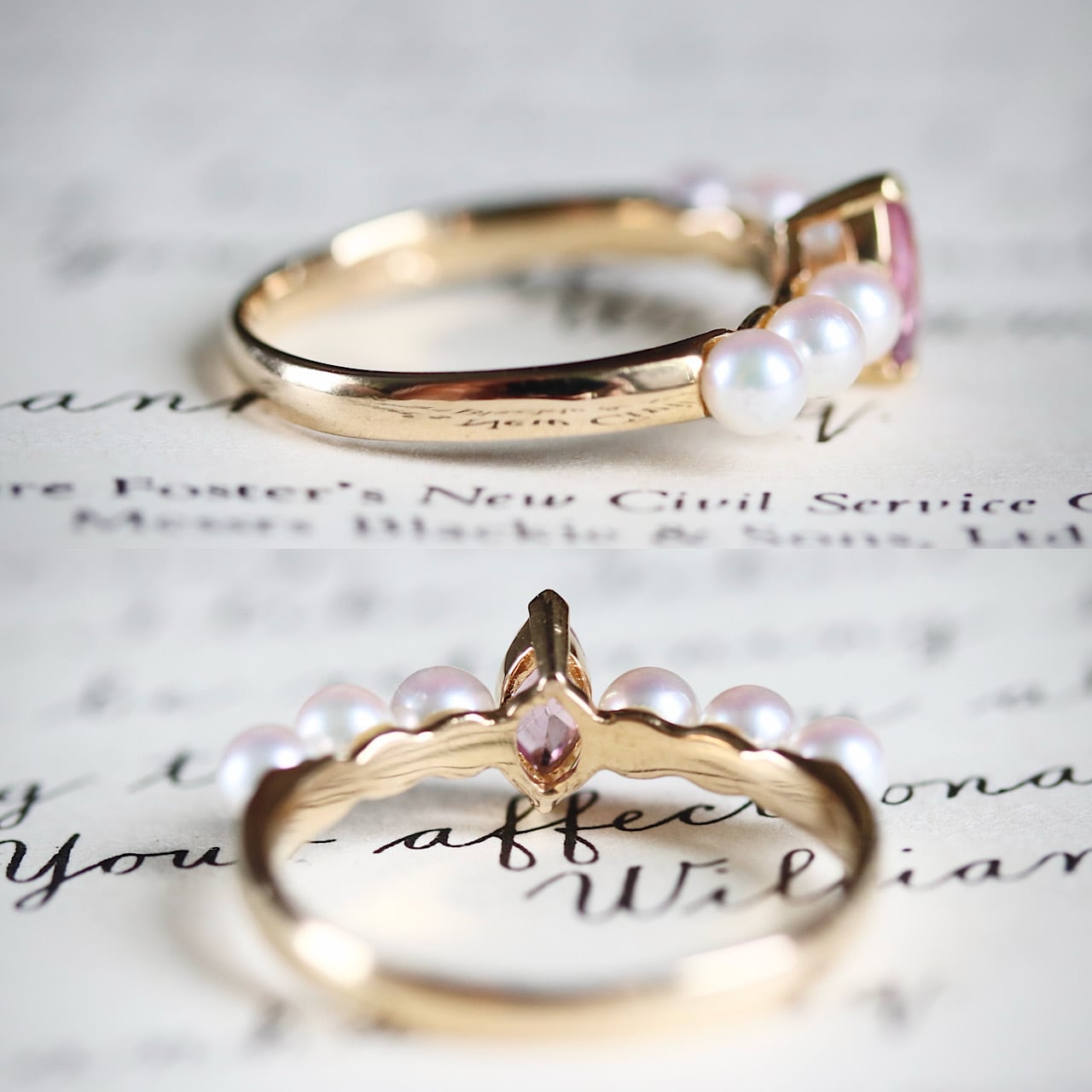 服部時計店 K18 天然ピンクトルマリンとあこやベビーパールのヴィンテージリング。