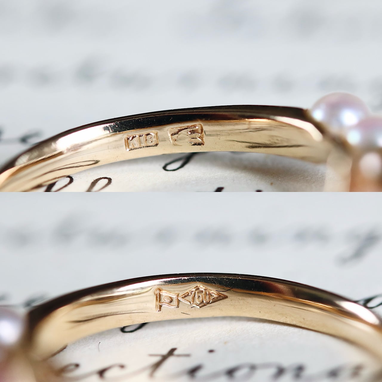 服部時計店 K18 天然ピンクトルマリンとあこやベビーパール ヴィンテージリング ソーティングメモ付