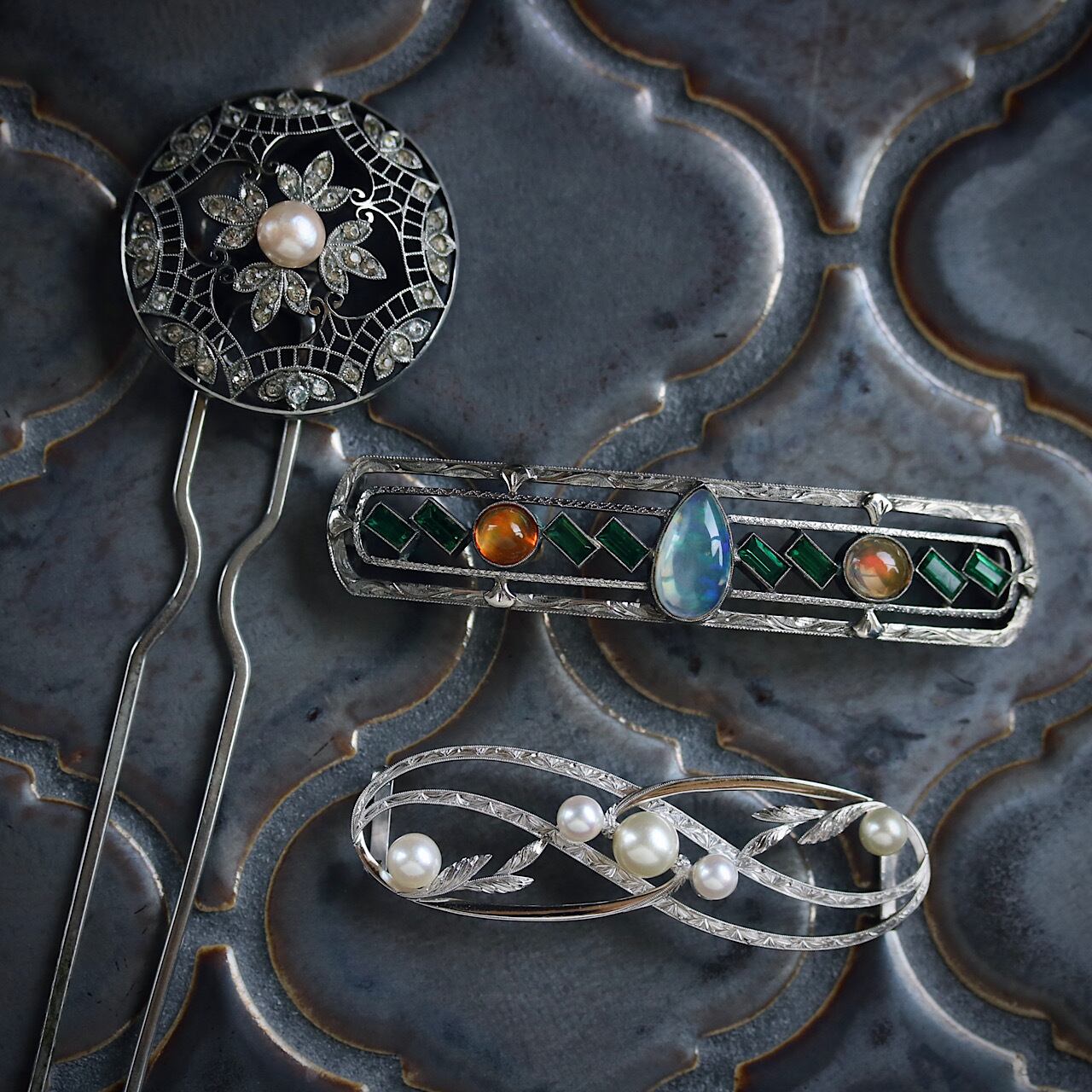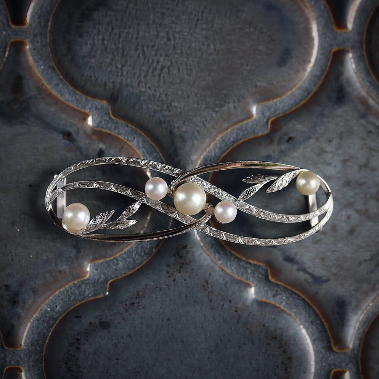 美しいあこや真珠があしらわれた、貴重なオールドミキモトのアンティーク帯留め。