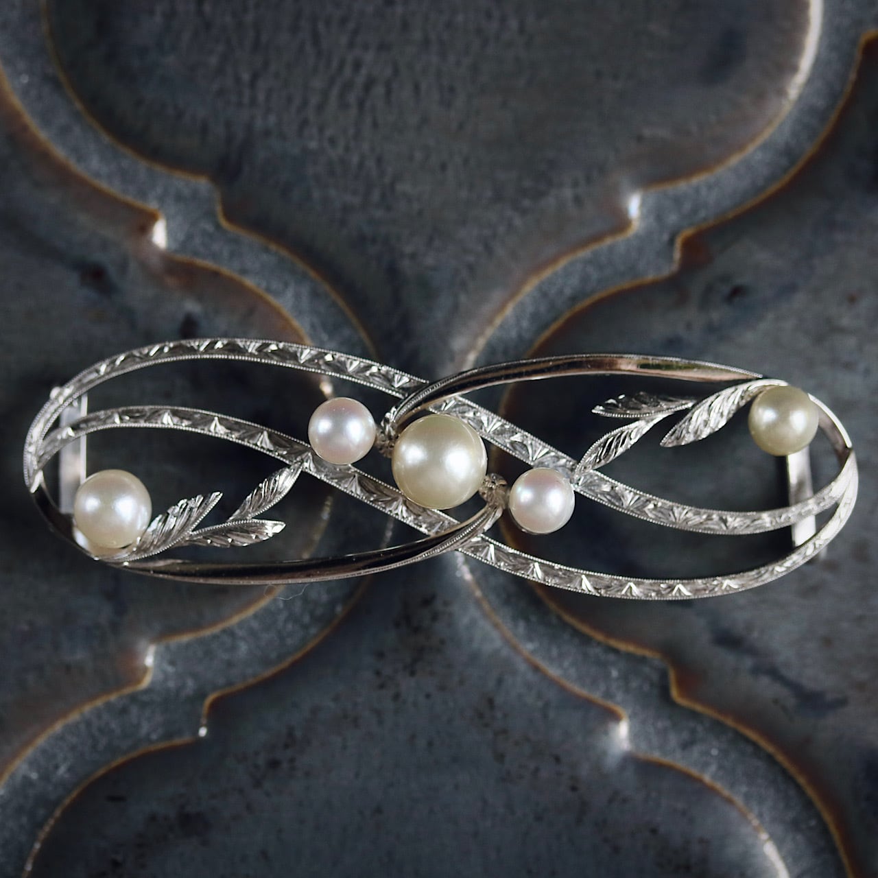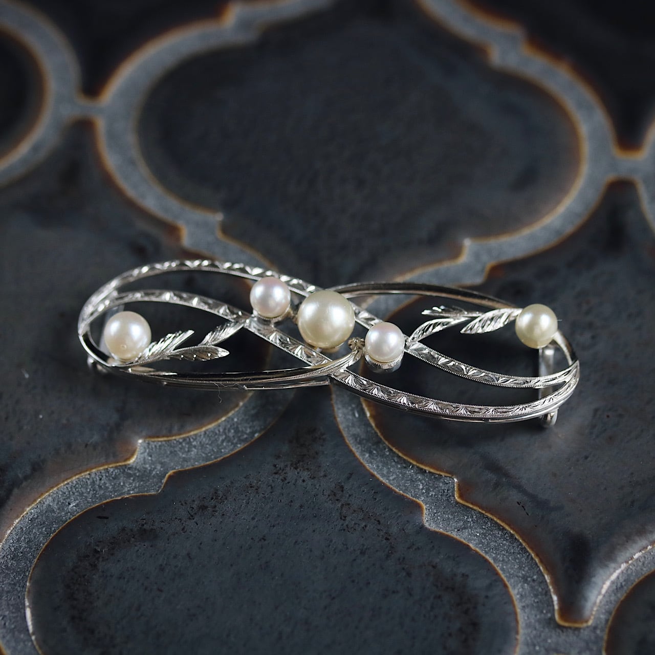 オールド御木本 K14WG あこや真珠 アール・ヌーヴォーなアンティーク帯留め。