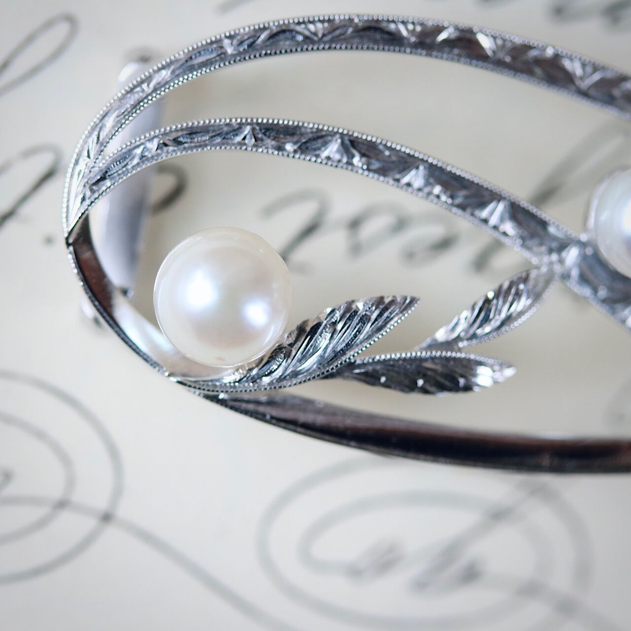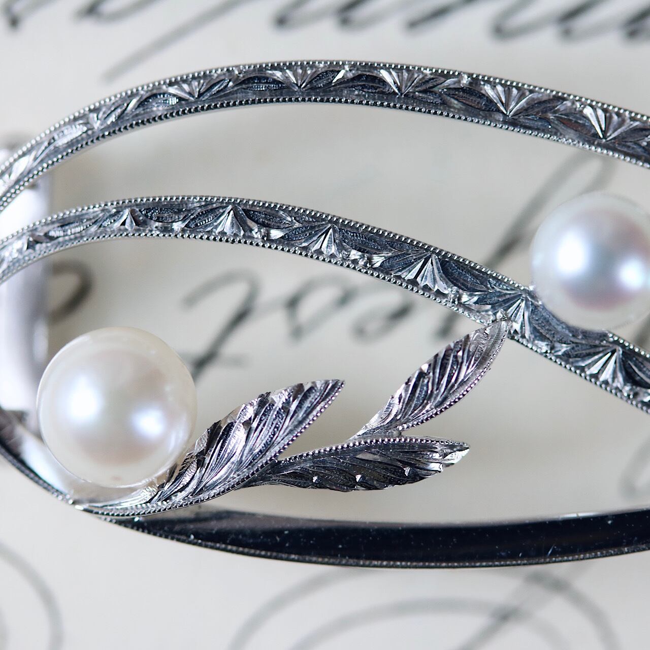 立体的かつ緻密に彫られた羽のような装飾など、流石ミキモトと思える美しい彫金。