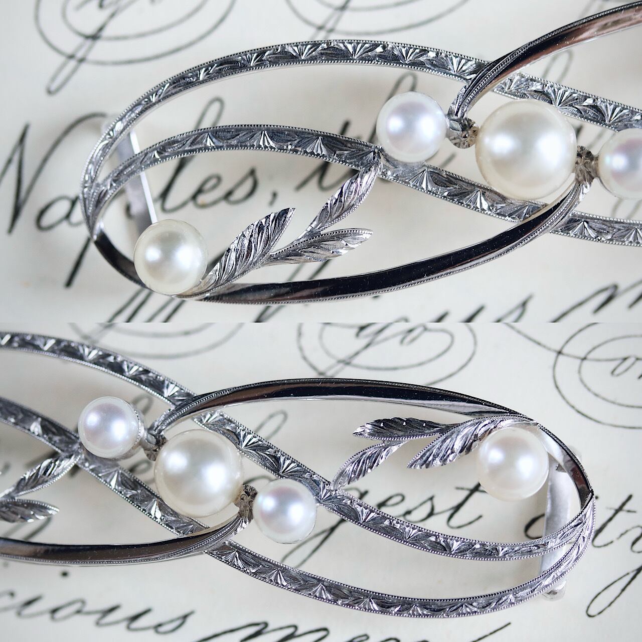 柔らかな輝きのあこや真珠と美しい彫金の組み合わせが見事に調和し、シンプルながらも手の込んだデザインが日本の品の良さを感じさせます。