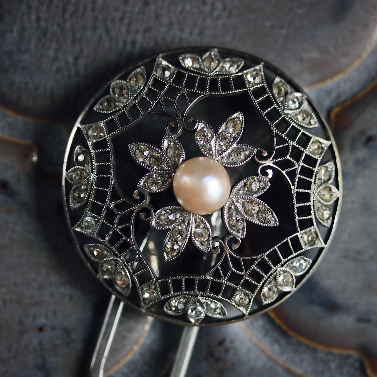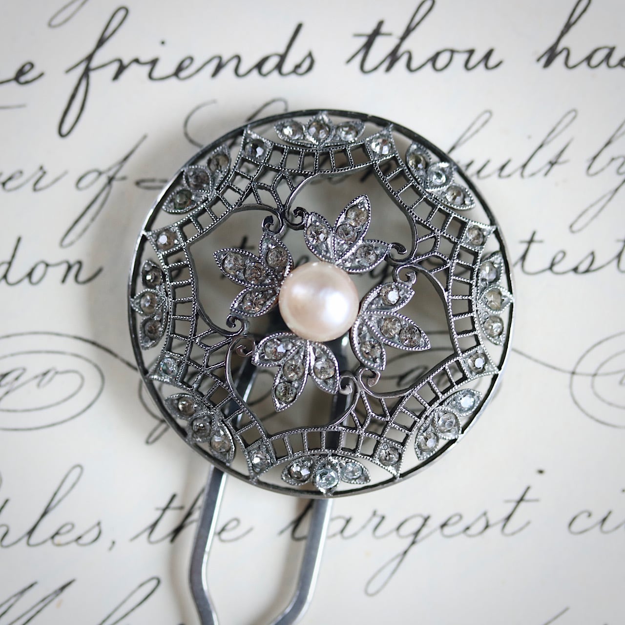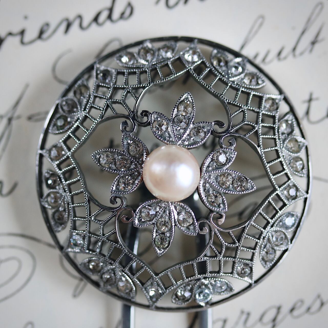 合金製 半円真珠飾りのアールデコスタイルのアンティーク簪。