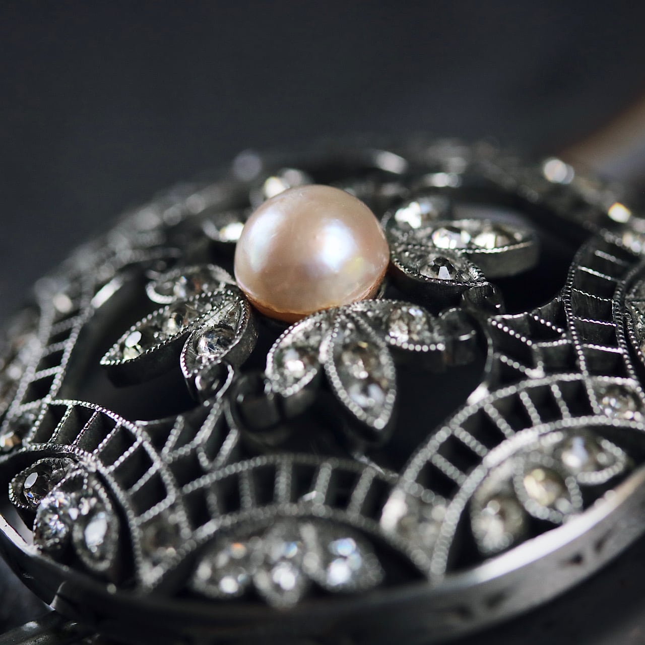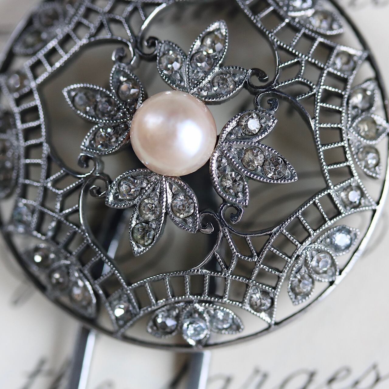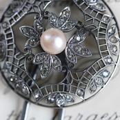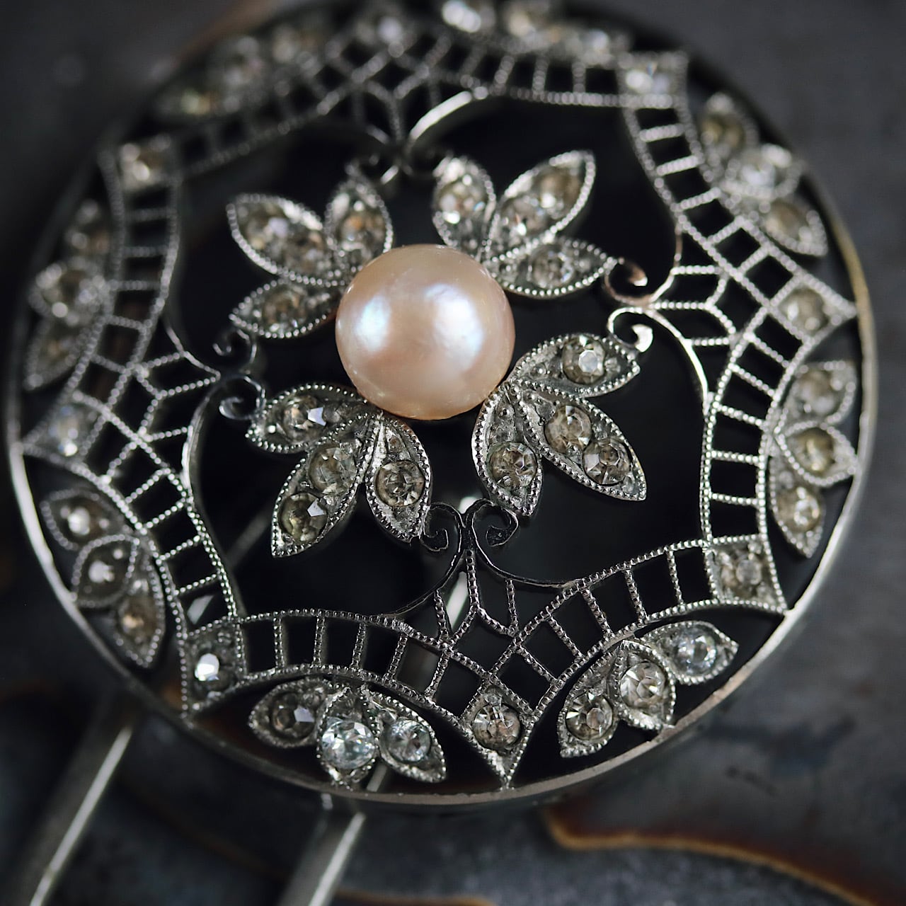 合金製 半円真珠飾りのアールデコスタイルのアンティーク簪。