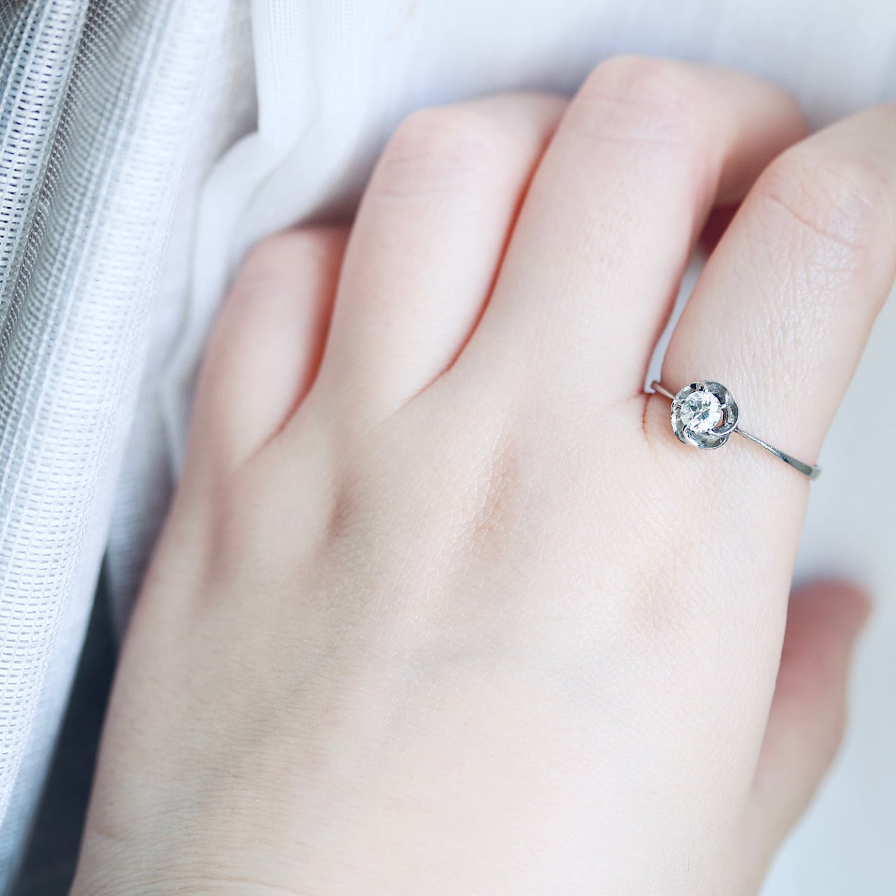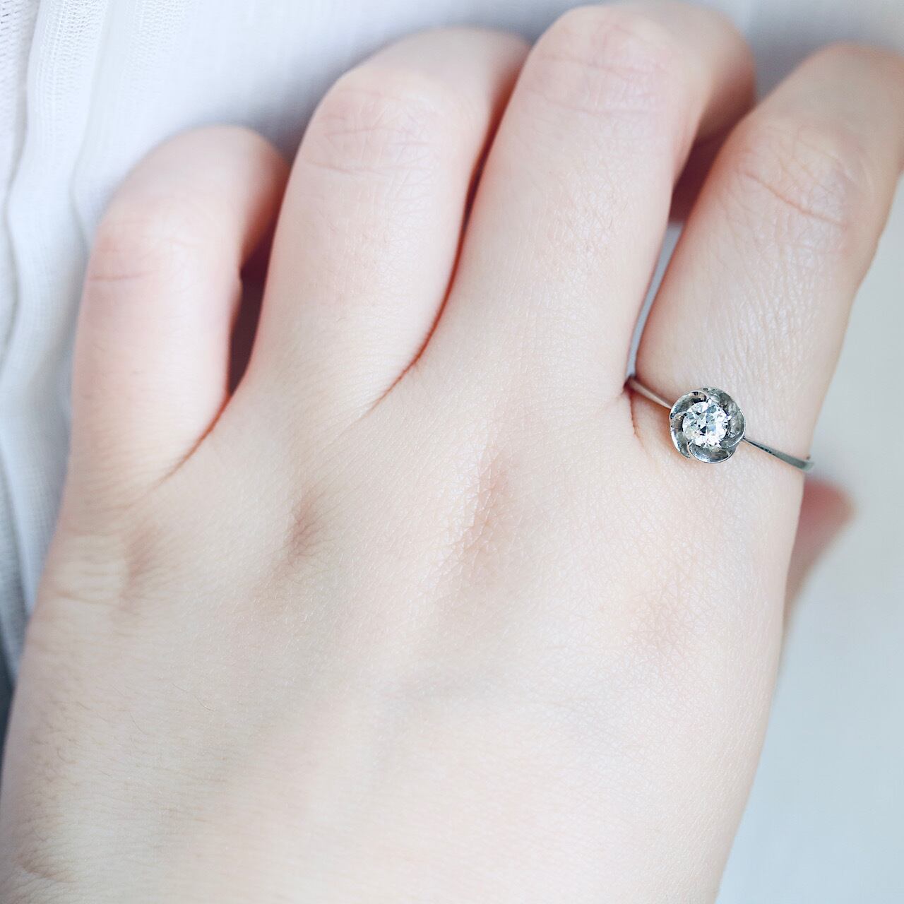 日本独自のデザインである捻り梅のシンプルなダイヤモンドリング。