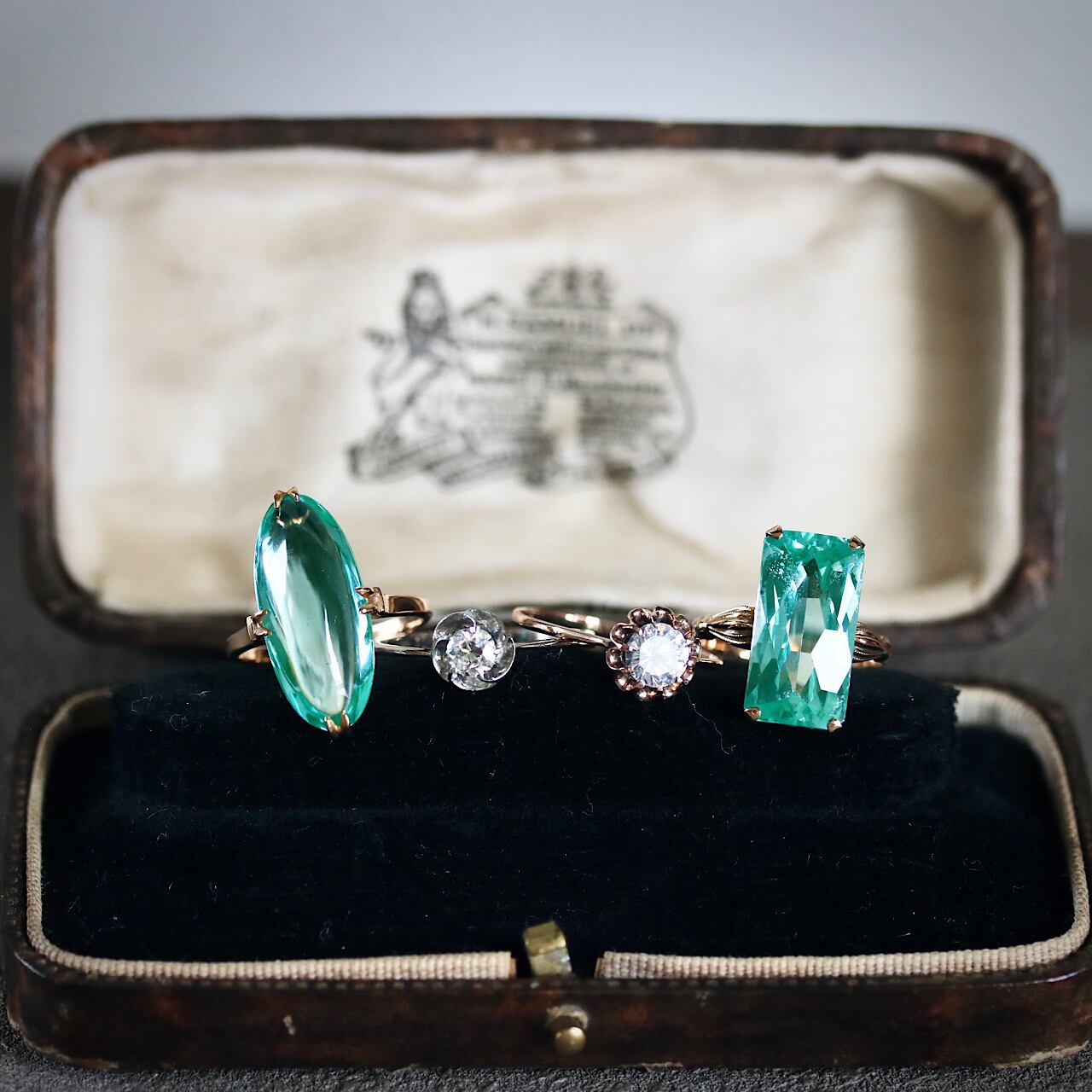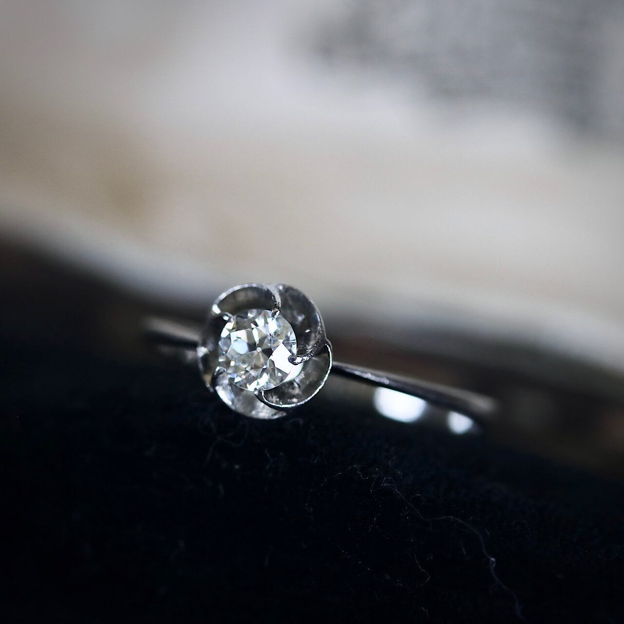 ダイヤモンドにはインクリュージョンが見られるものの、透明感のある美しいものが使われており、オールドカットならではのうるうるとした煌めきが感じられます。