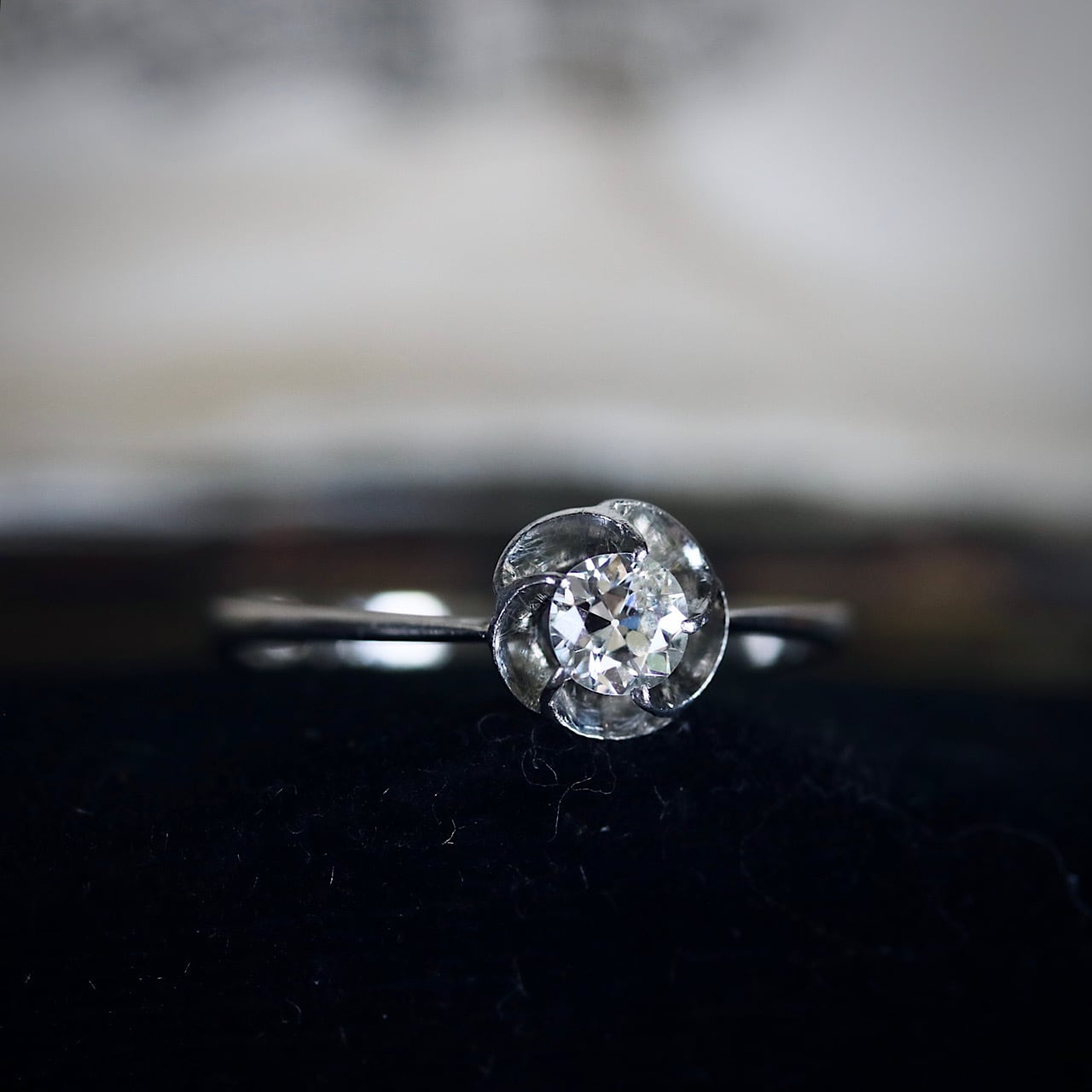 P.m プラチナ製 オールドヨーロピアンカットダイヤモンドの捻り梅ヴィンテージリング。