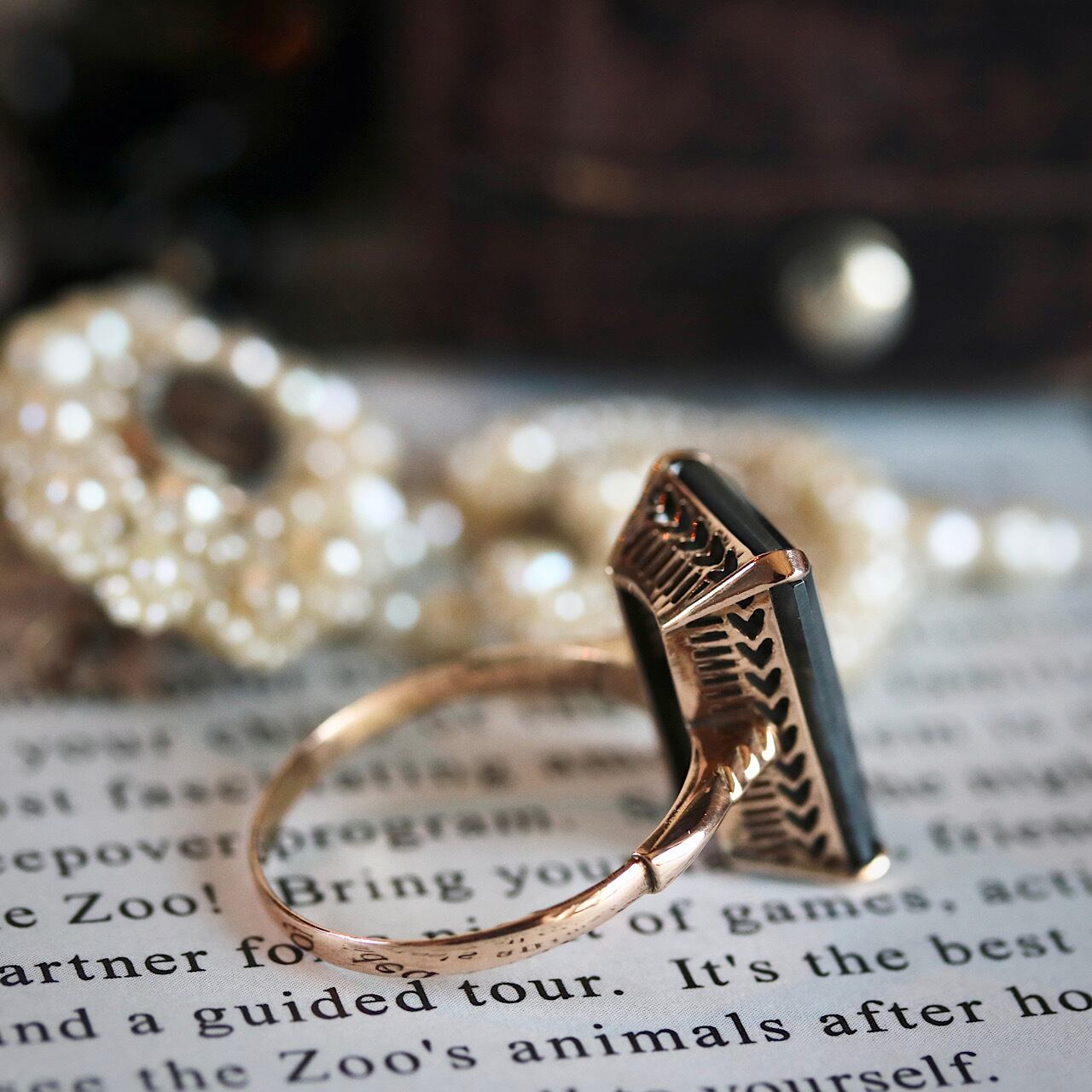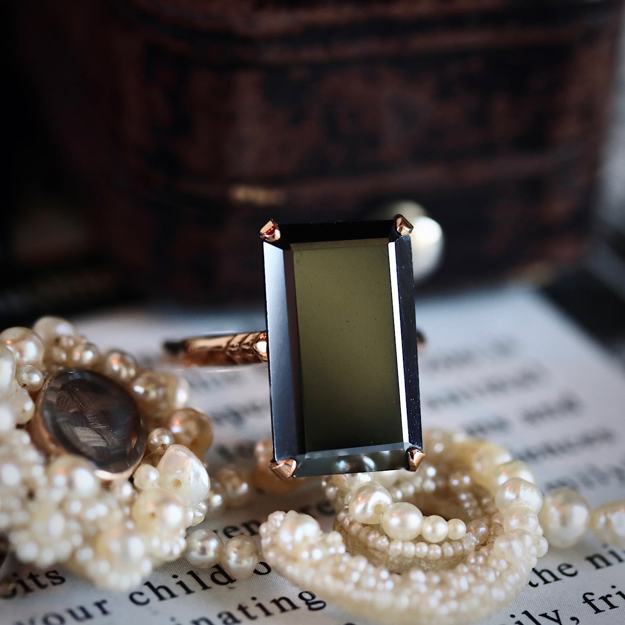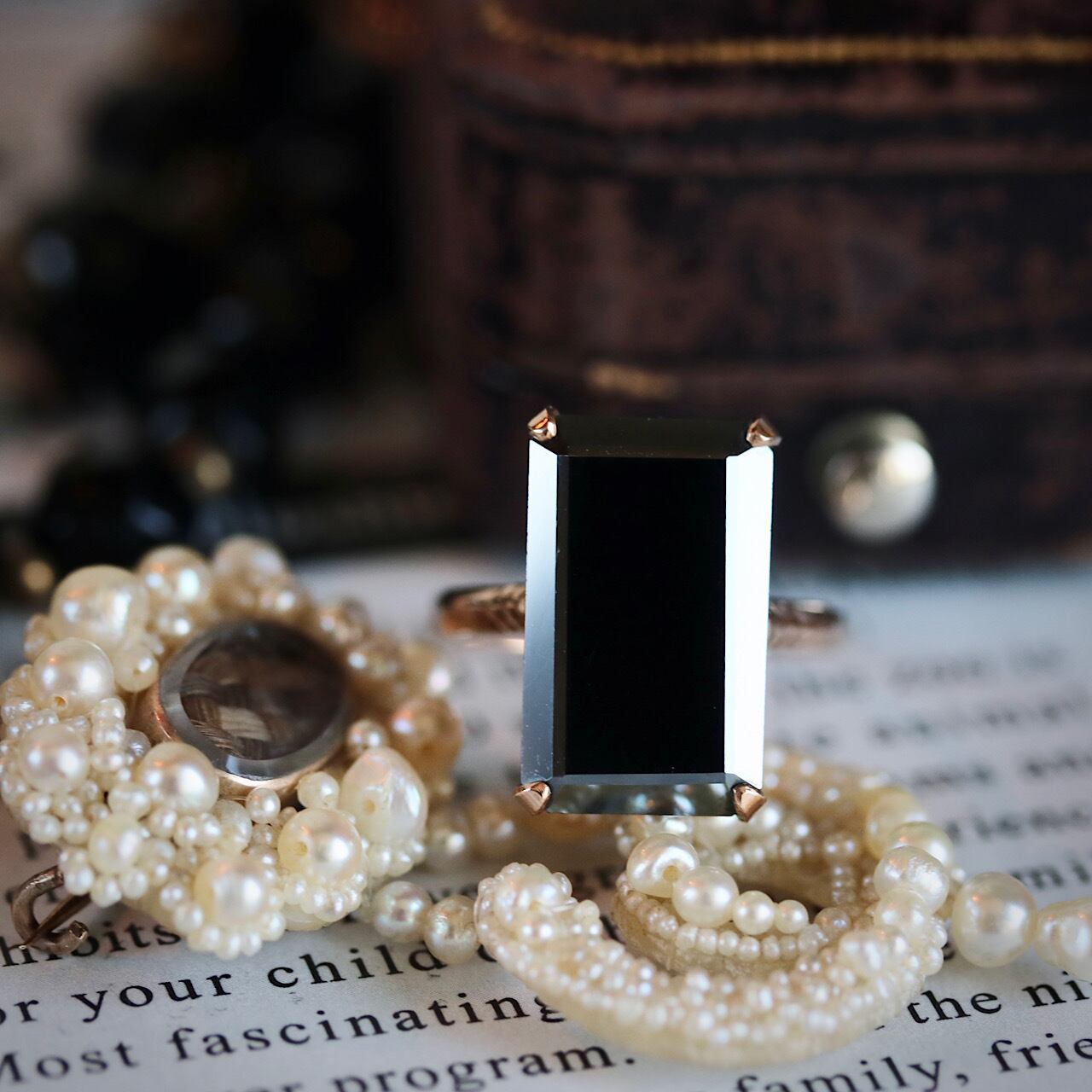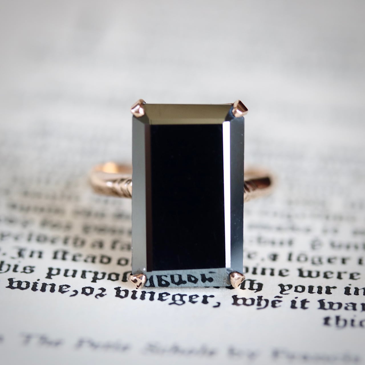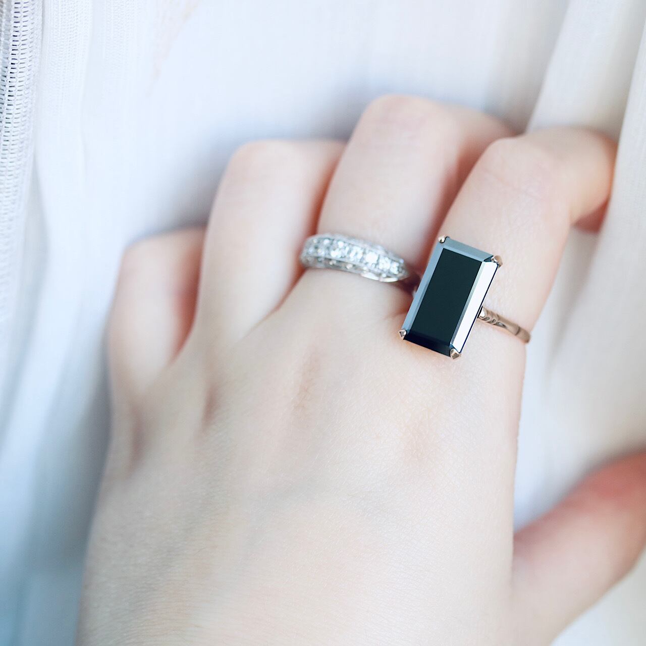 スクエア型のヘマタイトがモダンで上品なヴィンテージリング。