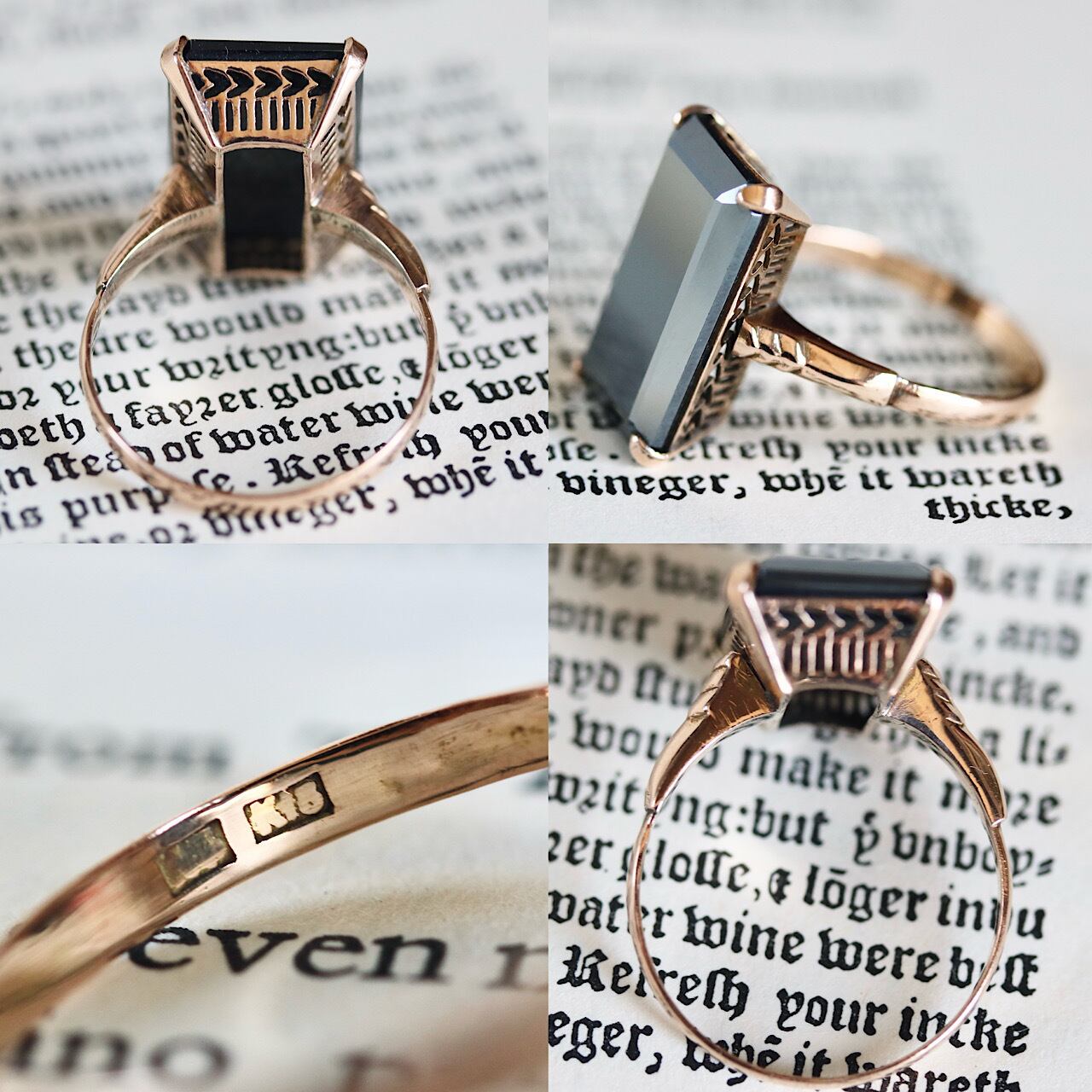K18 スクエア型ヘマタイトの千本透かヴィンテージリング。