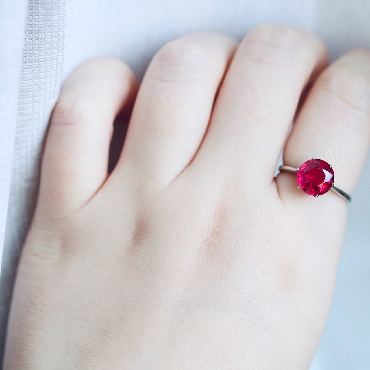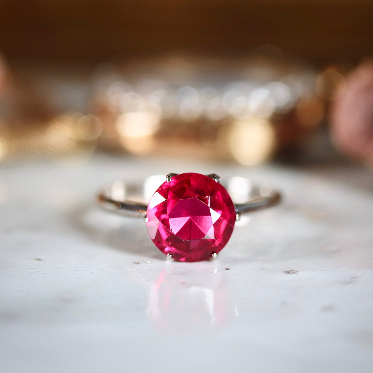 ころんとしたラウンドカットが可愛い合成ルビーのヴィンテージリング。