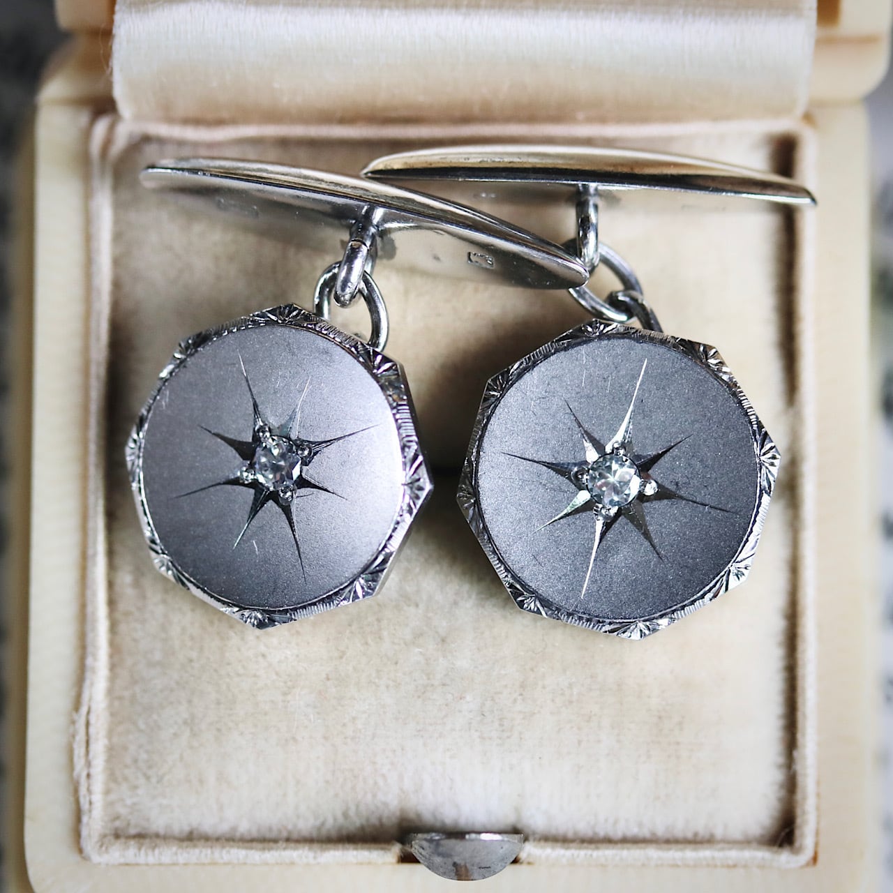 犬印(村松萬三郎)P.M プラチナ製 星留めダイヤモンド 和製アールデコスタイルのヴィンテージカフスボタン。