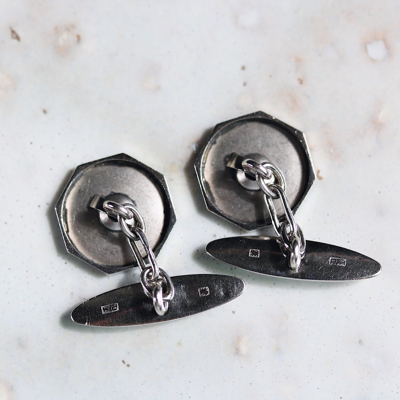 チェーンタイプのクラシックな形のカフスボタンで細工の良さから見ても戦前のお品と思われます。