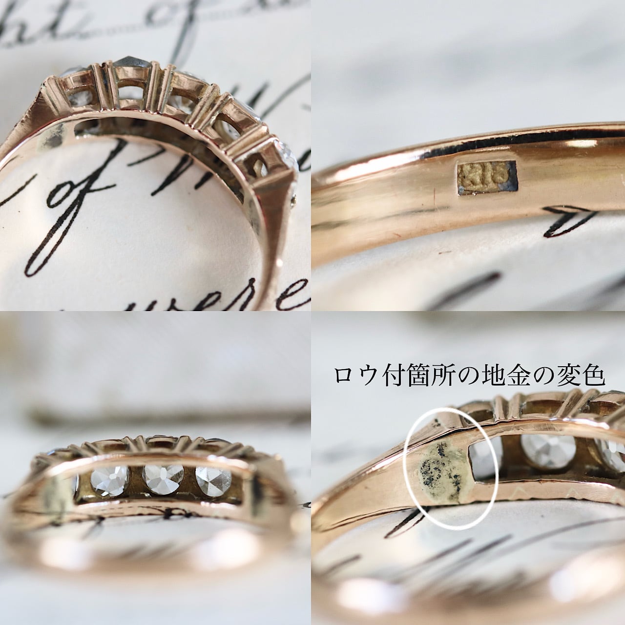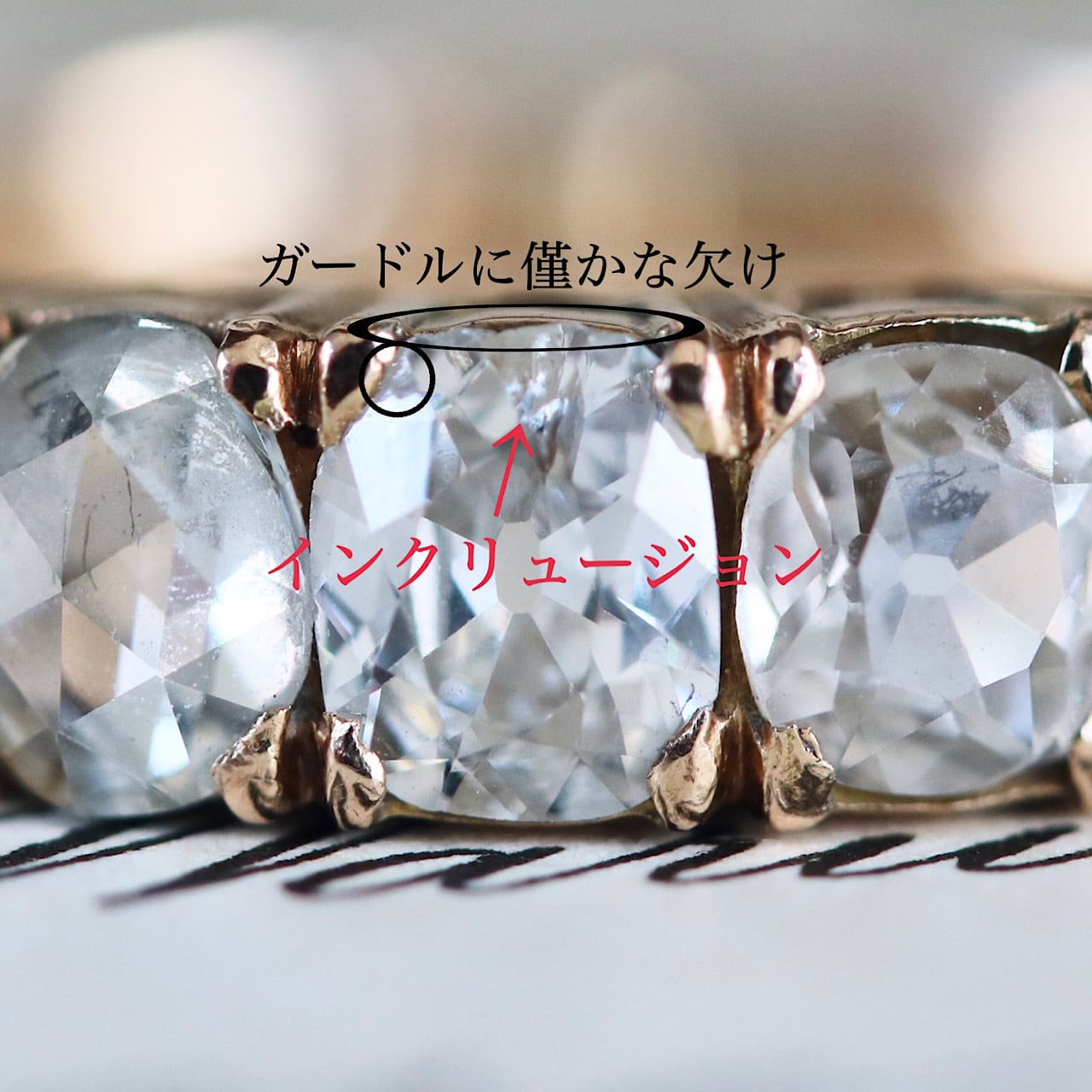 ※ルーペで見るとダイヤモンドに僅かな欠けが見られますが、美観に影響はなくアンティークダイヤモンドとしては許容範囲と思います。