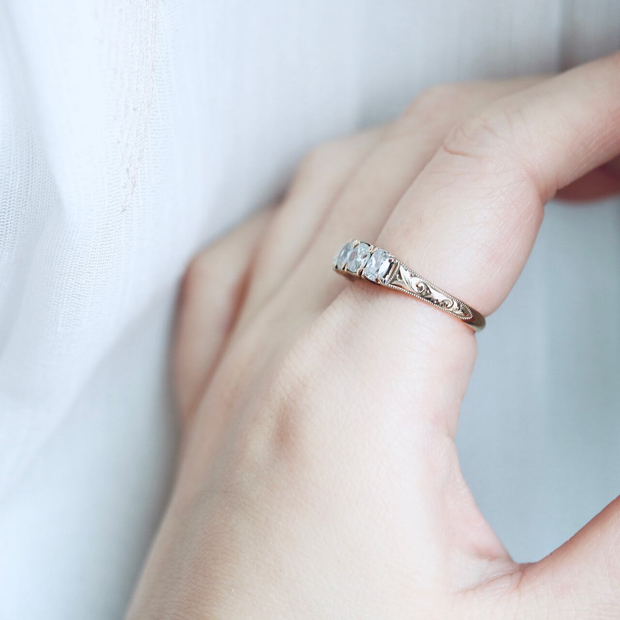 こちらは一石一石の大きさもしっかりありますので、よりアンティークダイヤモンドの瑞々しい輝きが際立ち、ダイヤモンド本来が持つ自然な透明感を感じることが出来ます。