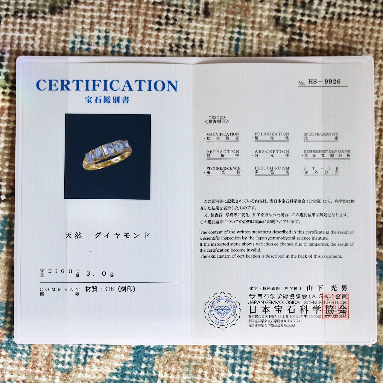 【貴重】K18 オールドマインカットダイヤモンド ローズカットダイヤモンド 一文字 ヴィンテージリング 鑑別書付