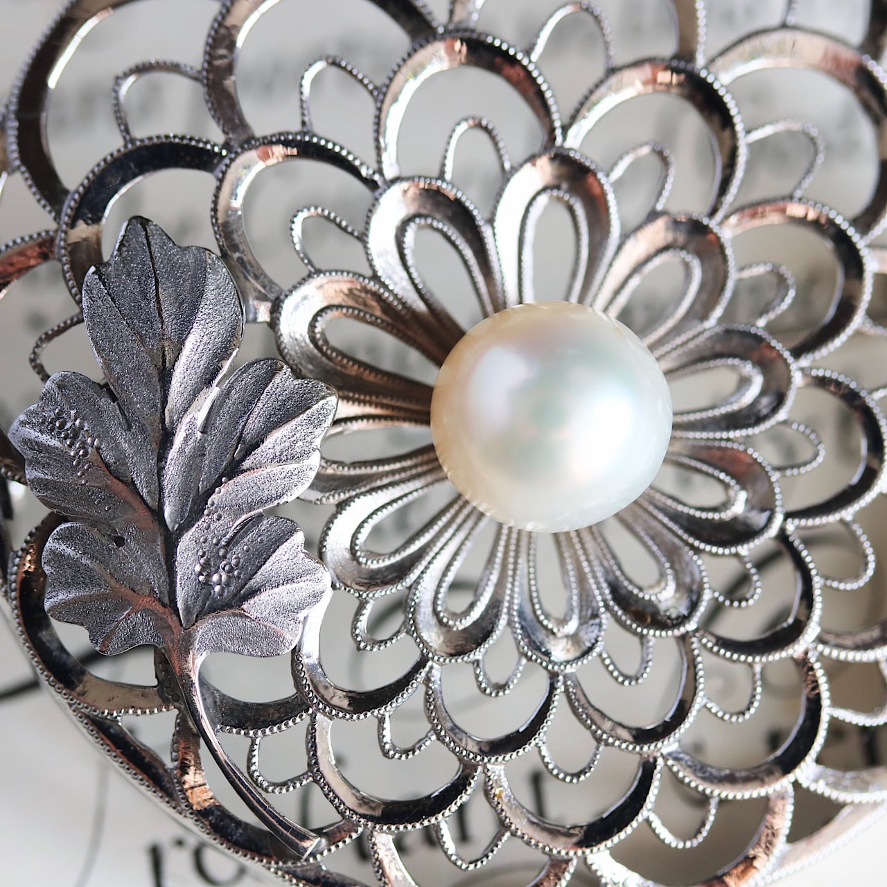 合金製ですが造りが良く、花弁の繊細な透かしに所狭しと施されたミルグレインは細やかで丁寧な作り。