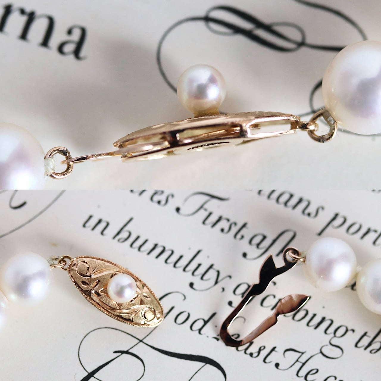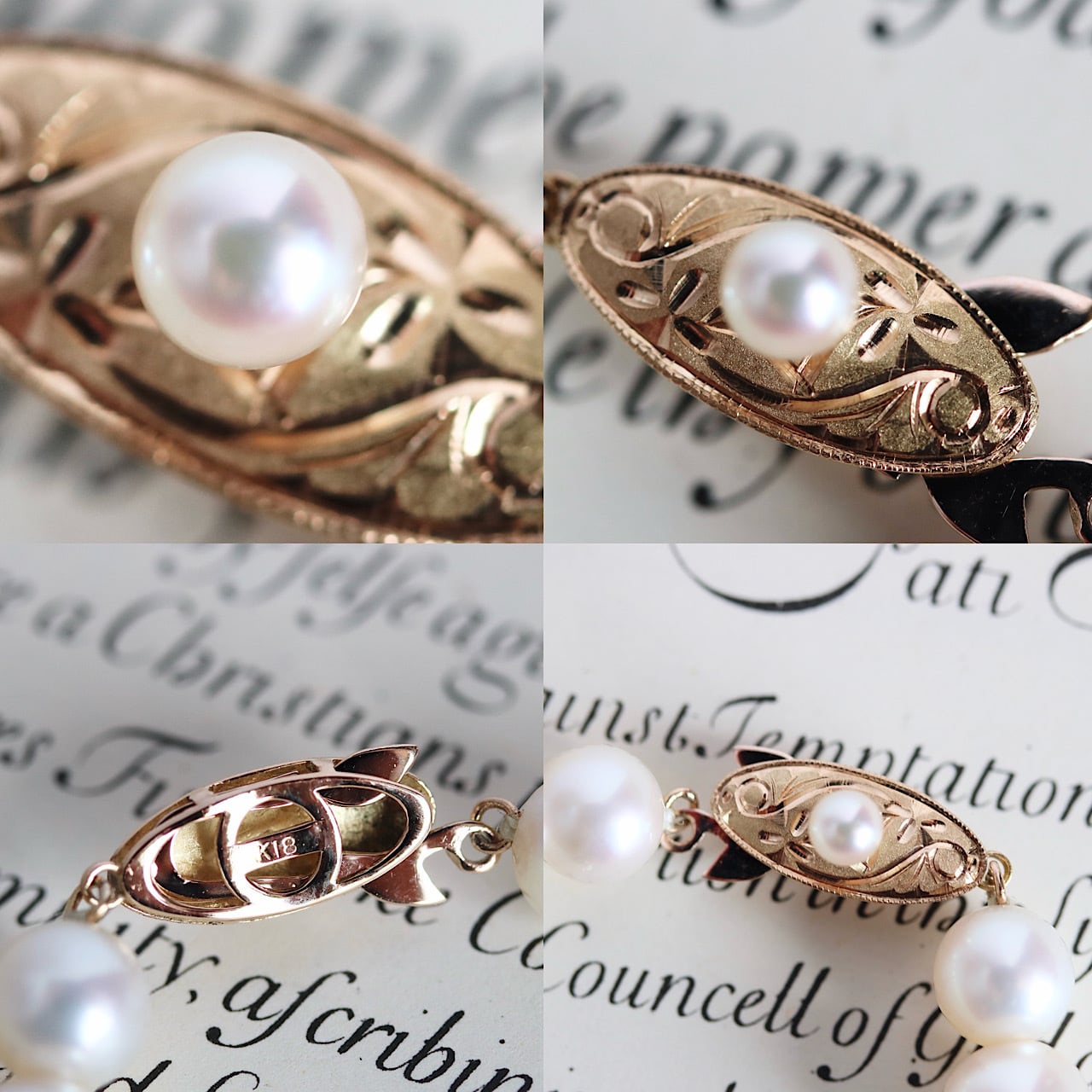 K18 和彫クラスプ あこや真珠のヴィンテージネックレス ソーティングメモ付
