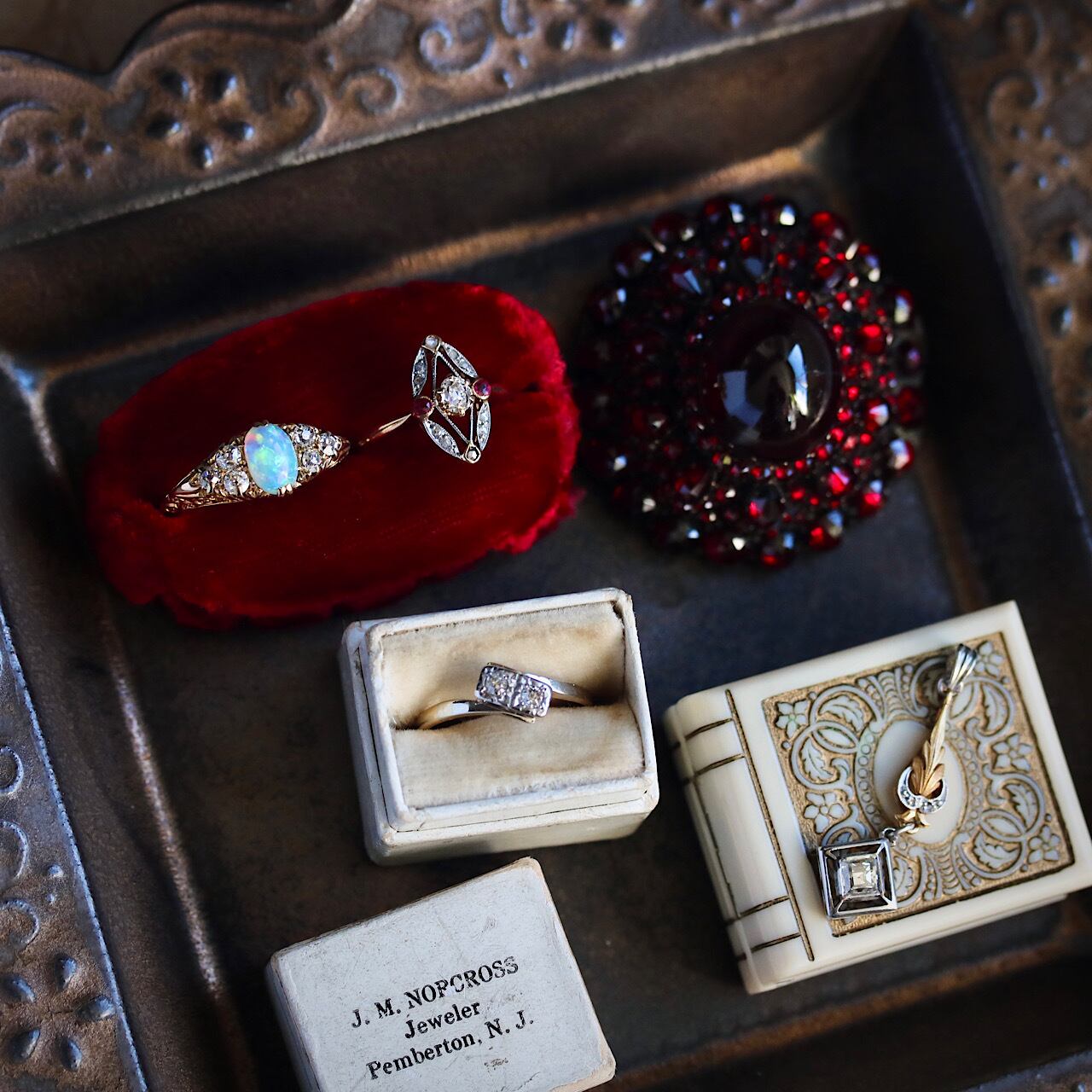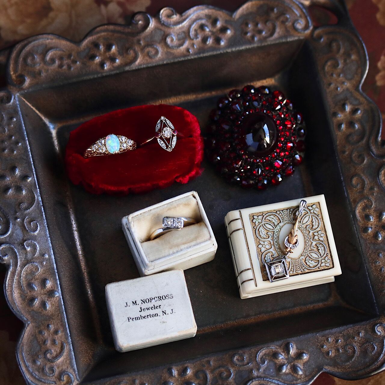 ダイヤモンドは現代のブリリアントカットの原型と呼ばれるオールドマインカットを進化させたオールドヨーロピアンカットが使用されています。