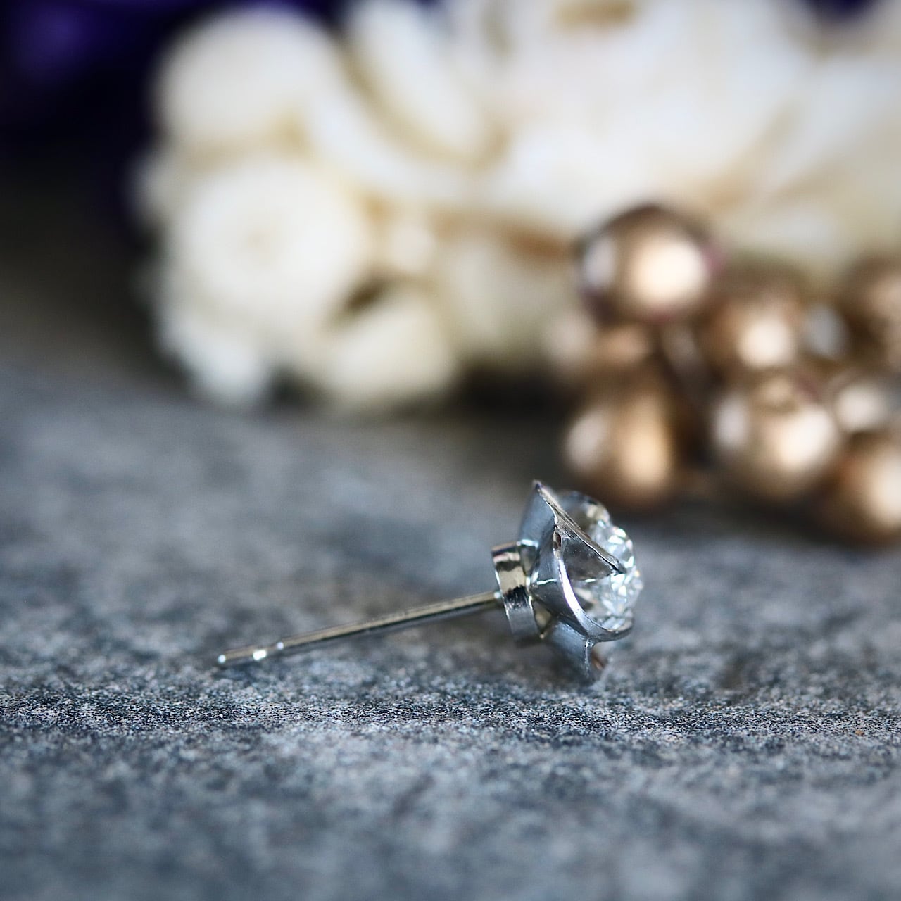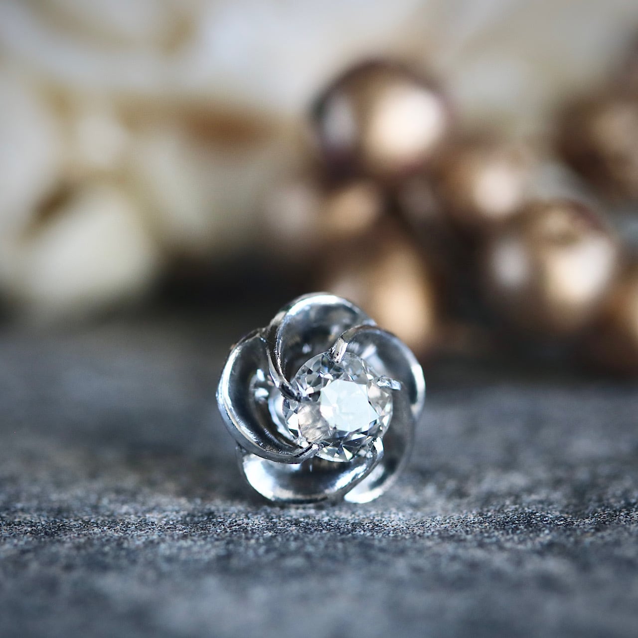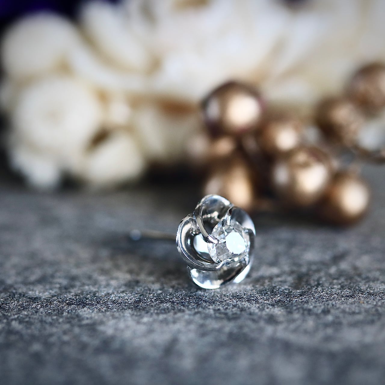 美しい捻り梅の一粒ダイヤモンドピアス。
