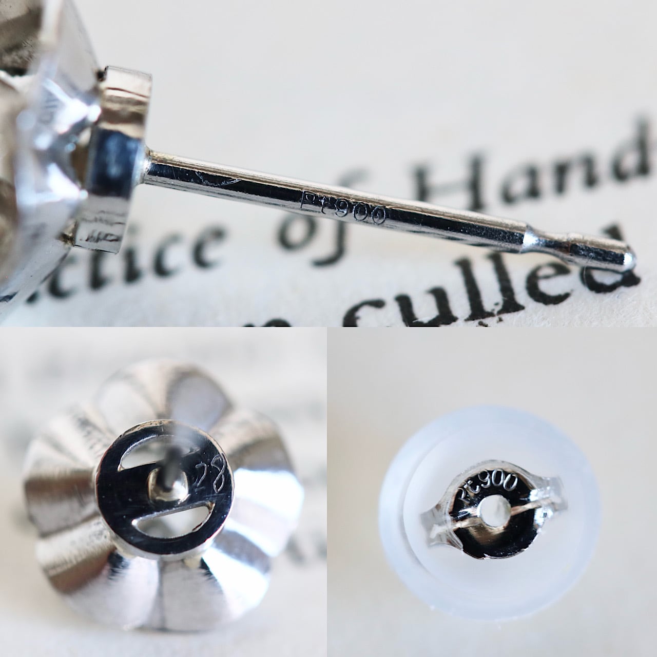 Pt900&シリコン樹脂製(落ちにくいダブルロックタイプ)のキャッチが付属します。