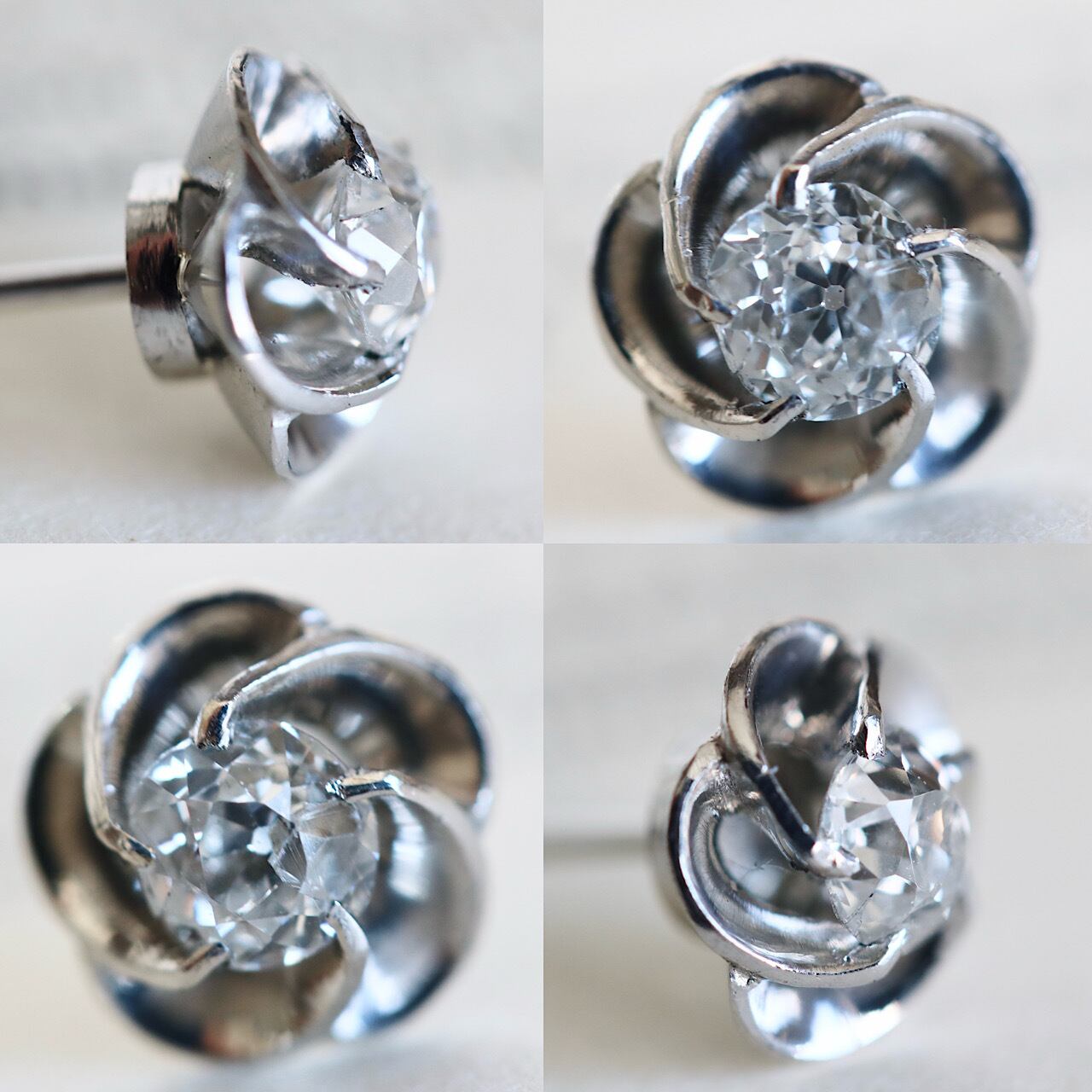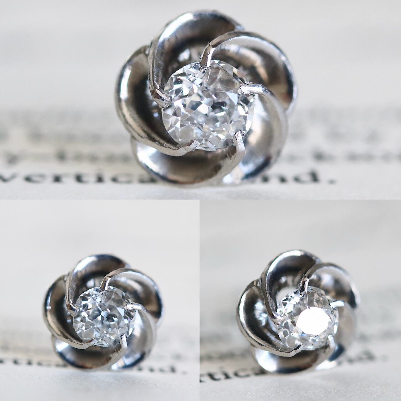 Pt900 オールドヨーロピアンカットダイヤモンドの捻り梅ピアス(片耳用)