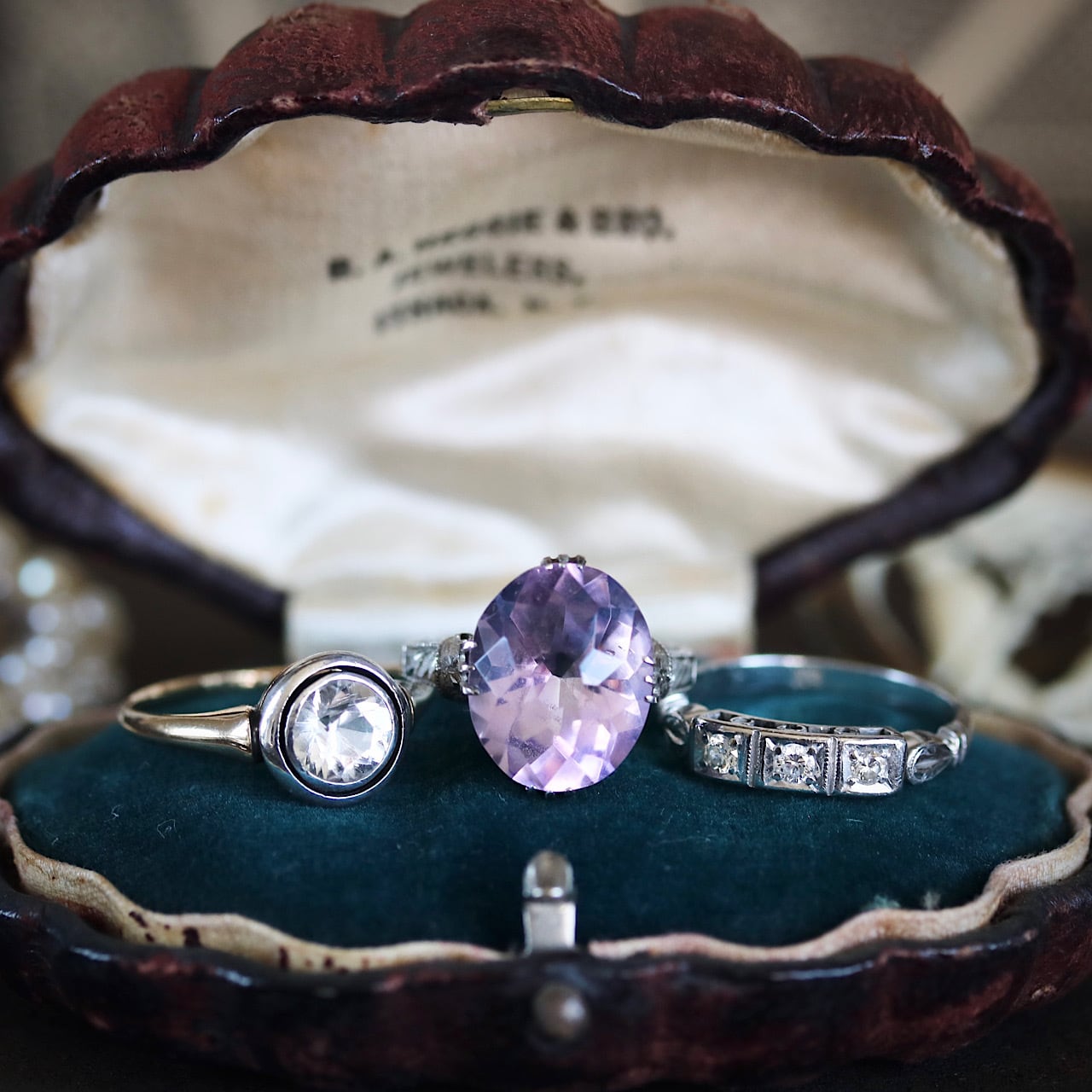 地金はK14に石周りにはプラチナ(又はWG)を重ねた二色金の精緻な仕立てで、戦前ならではの手仕事の粋を感じさせる造りになっています。