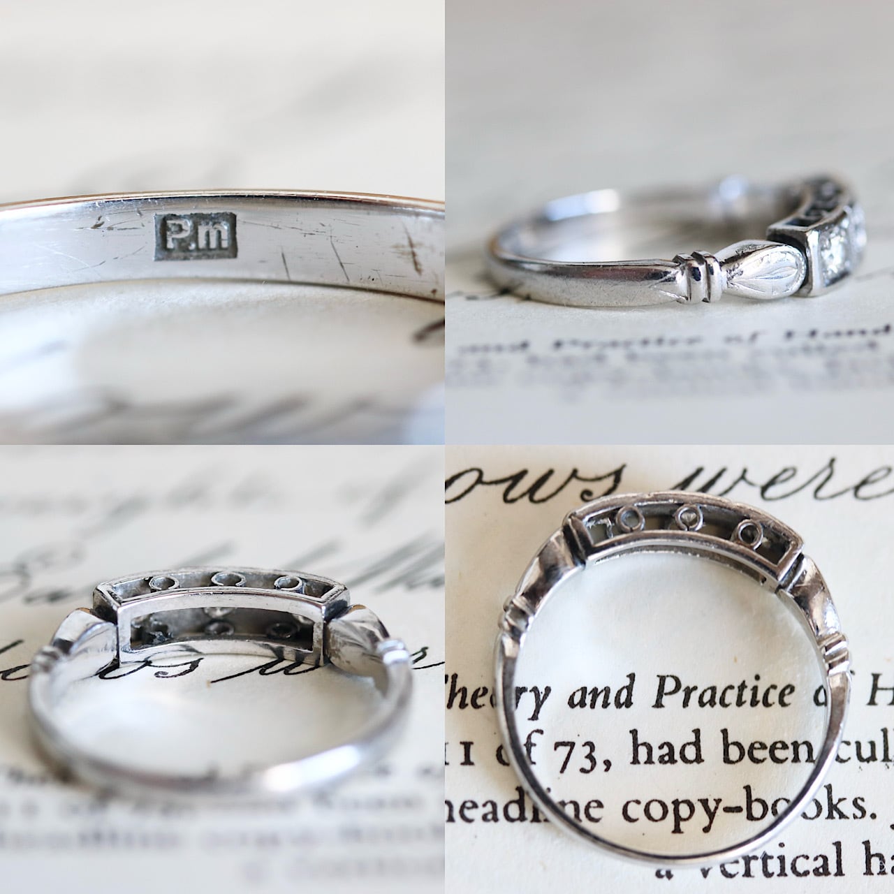 P.m プラチナ製 ダイヤモンド スリーストーン アールデコ ヴィンテージリング