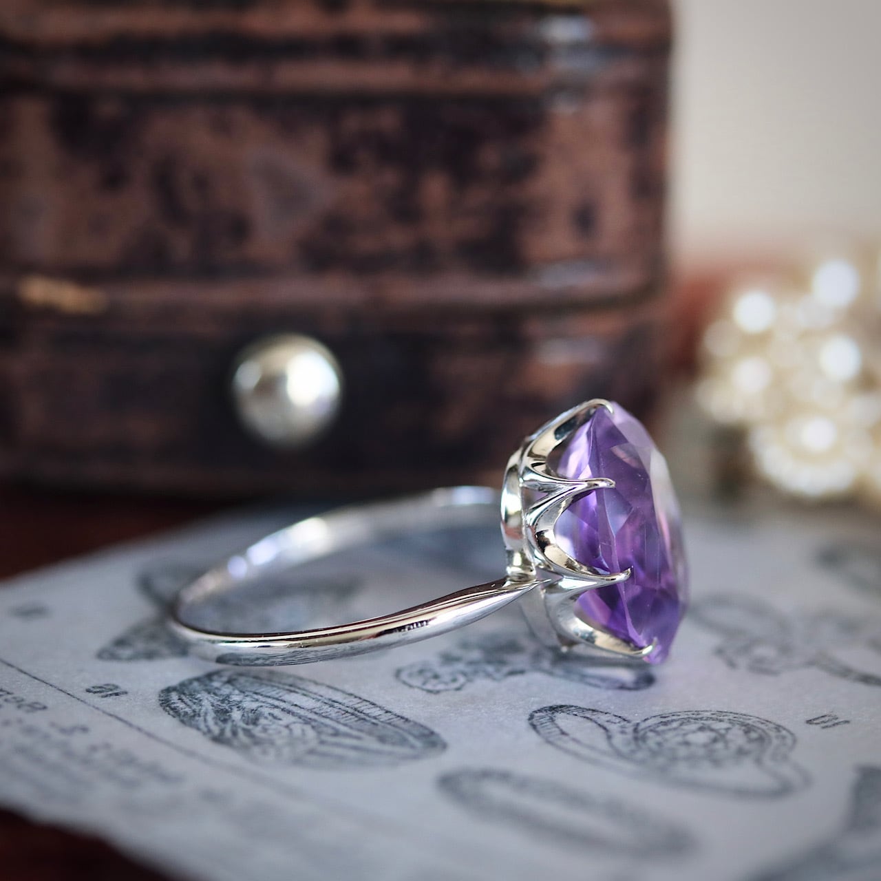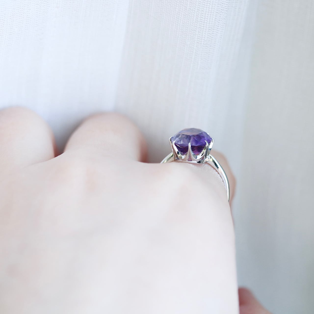 石の透明度を最大限に活かし、天然アメジストの美しさがより感じられます。