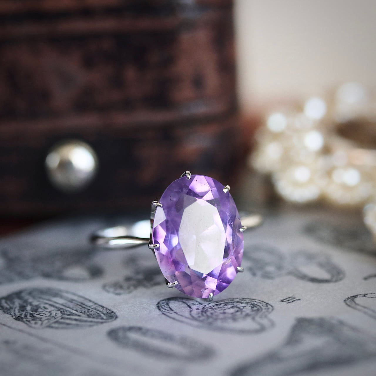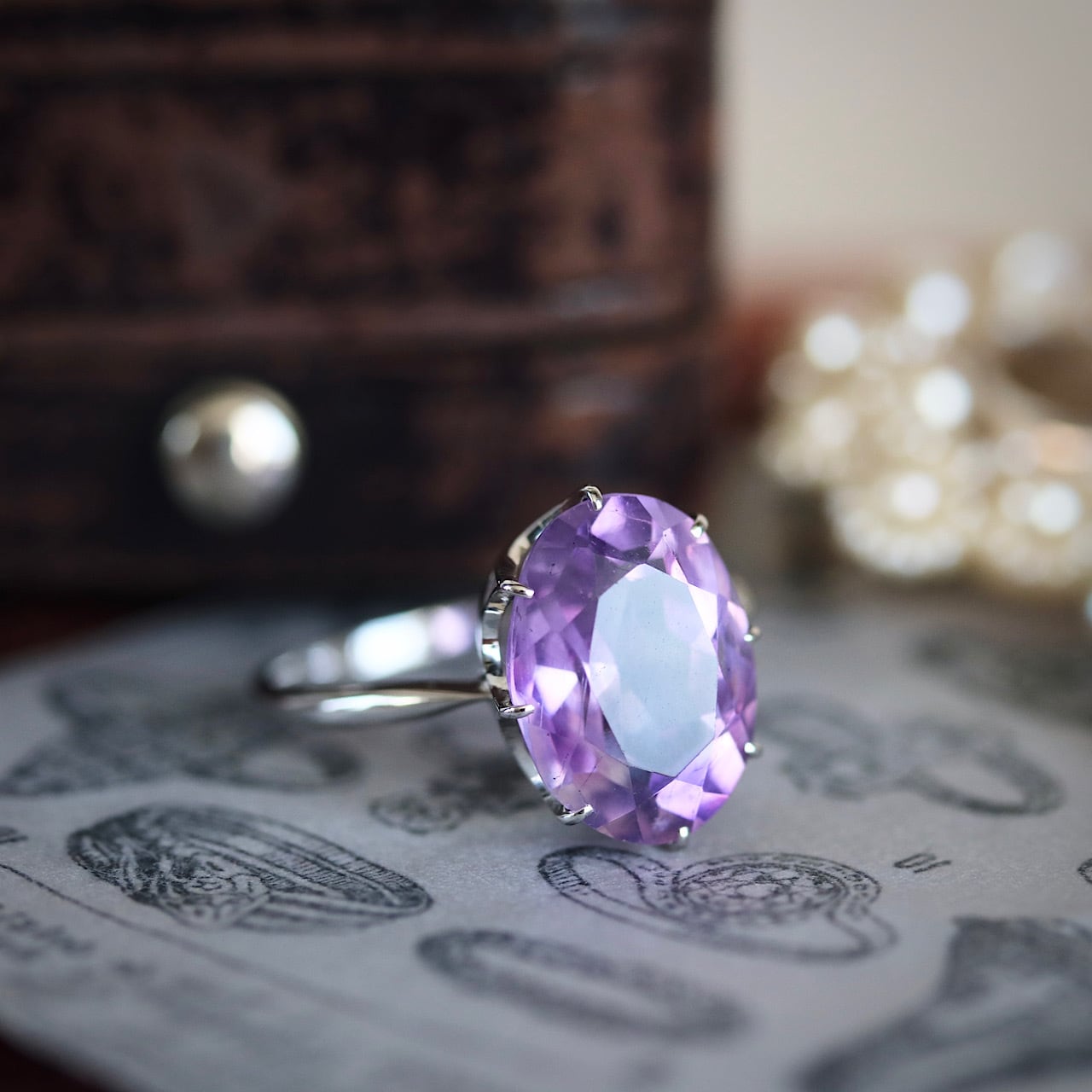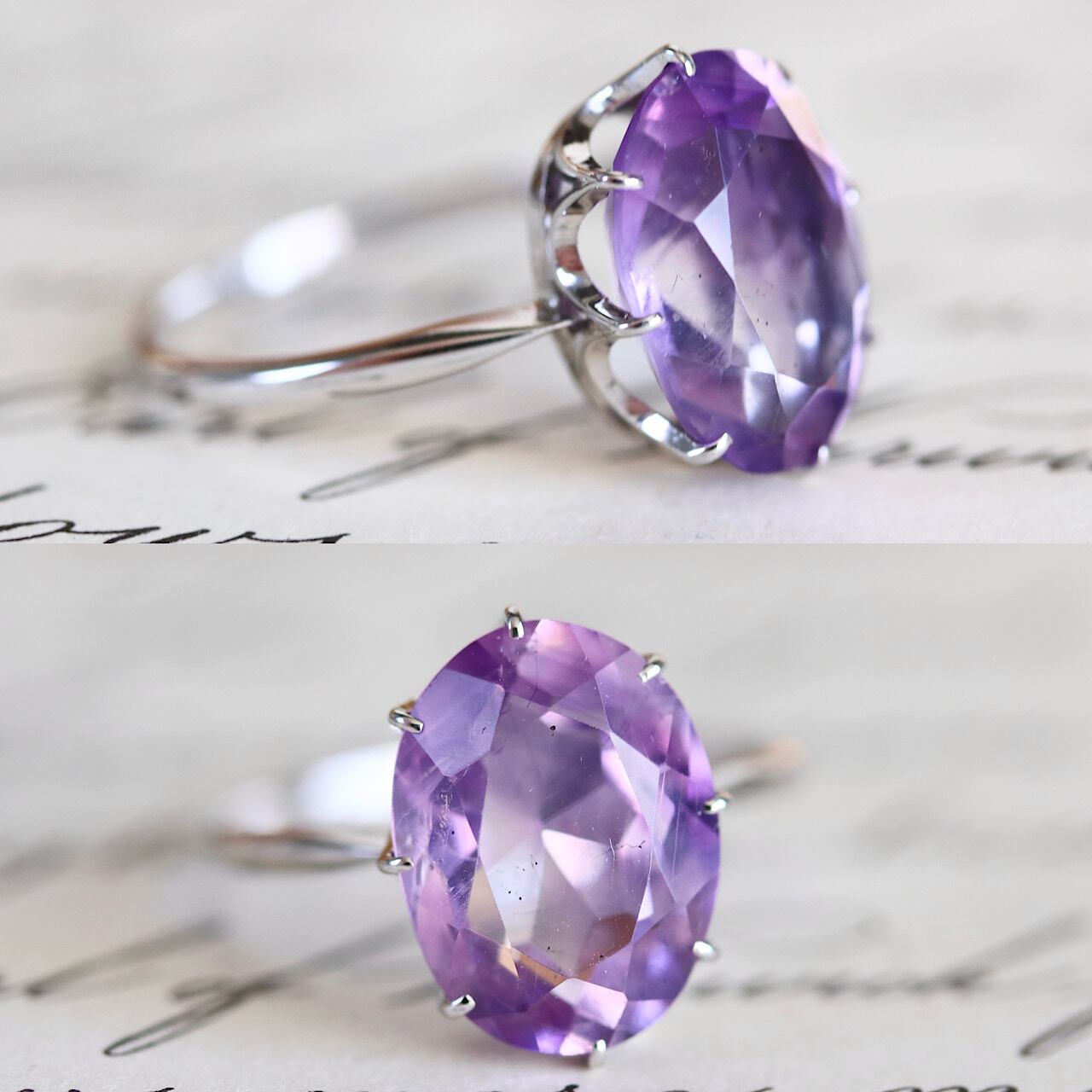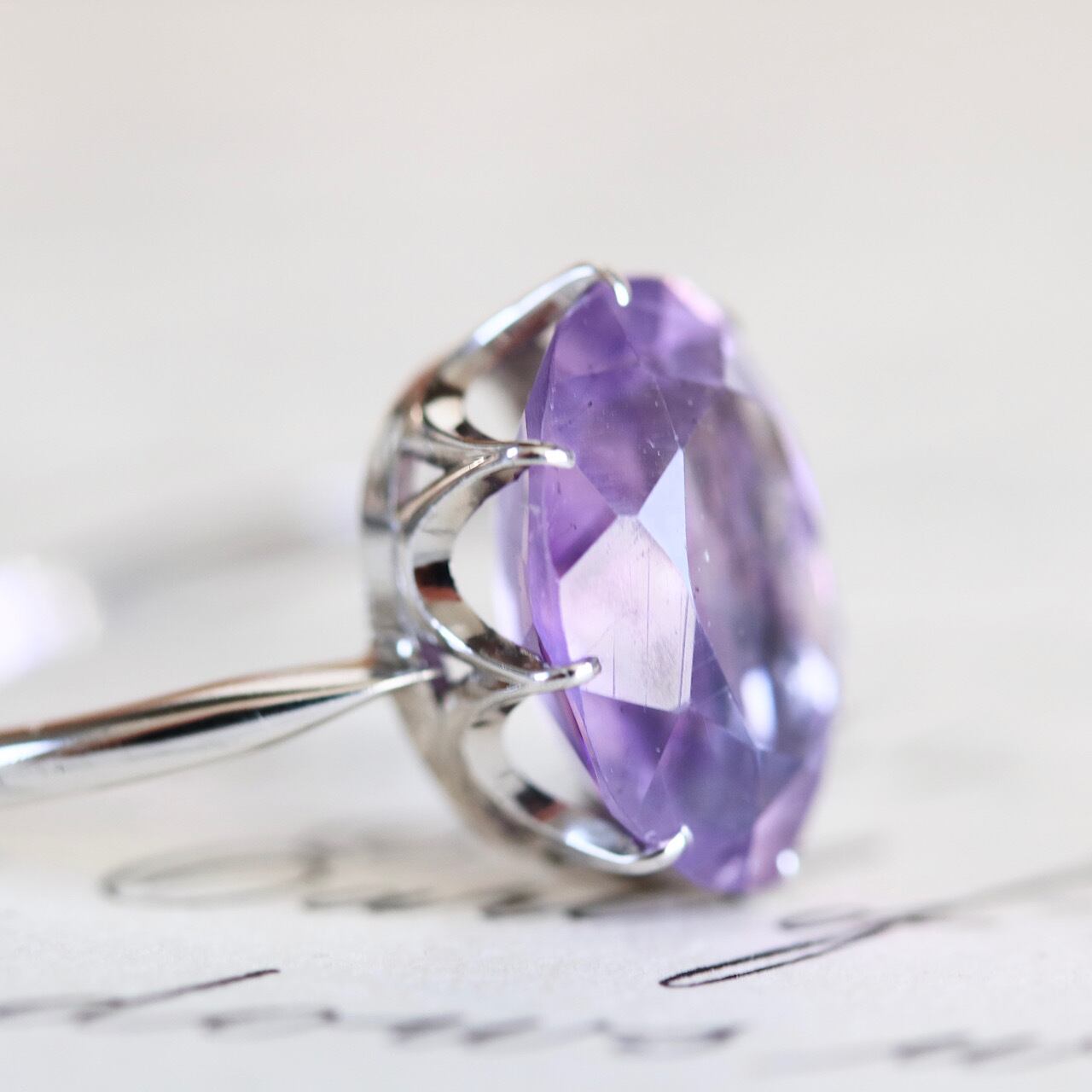 大粒の天然アメジストが使用されたオールド御木本のヴィンテージリング。