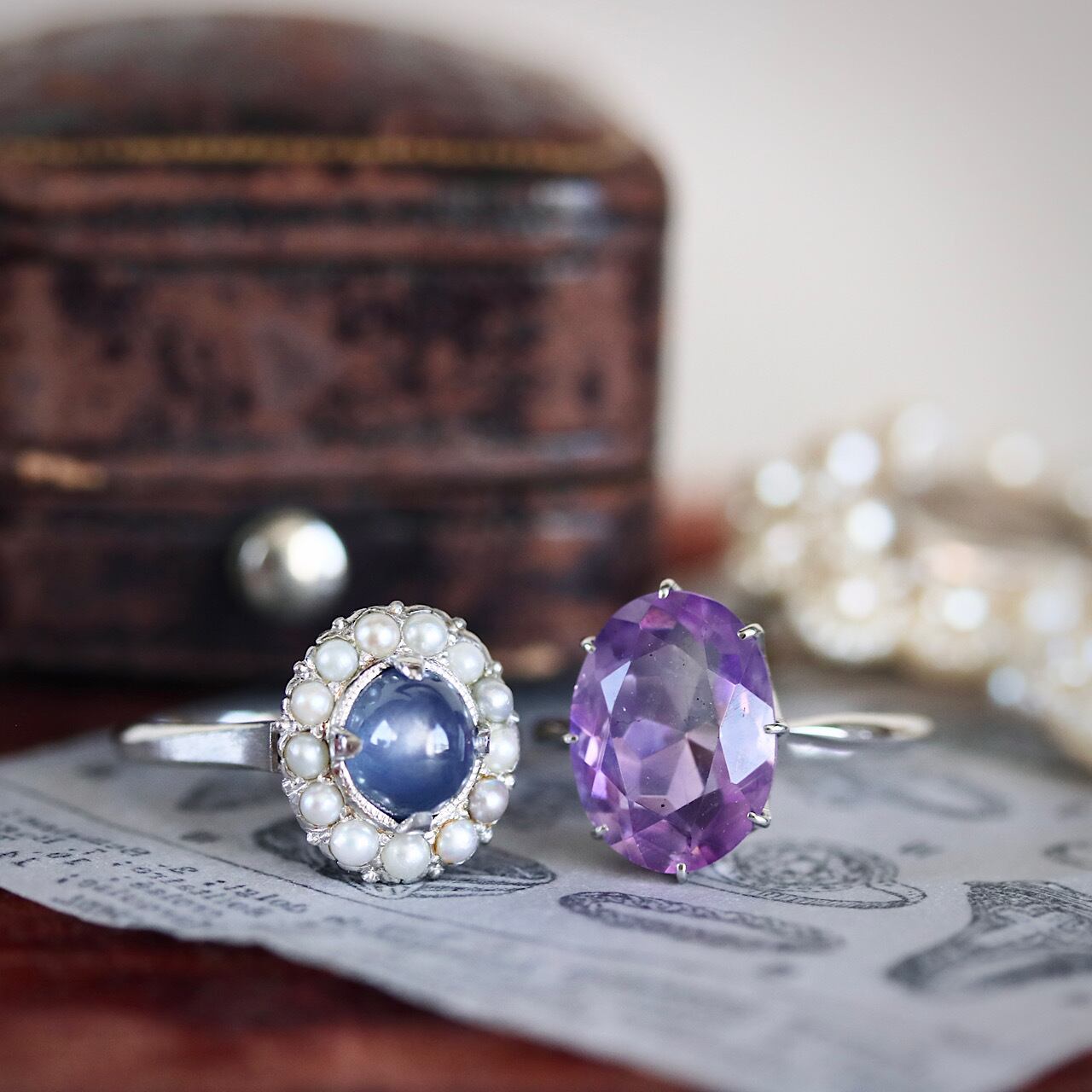 パールのイメージが強いミキモトにおいて、パールを一切使わず天然アメジストのみが使用されたリングは珍しく、コレクターアイテムと言えるでしょう。