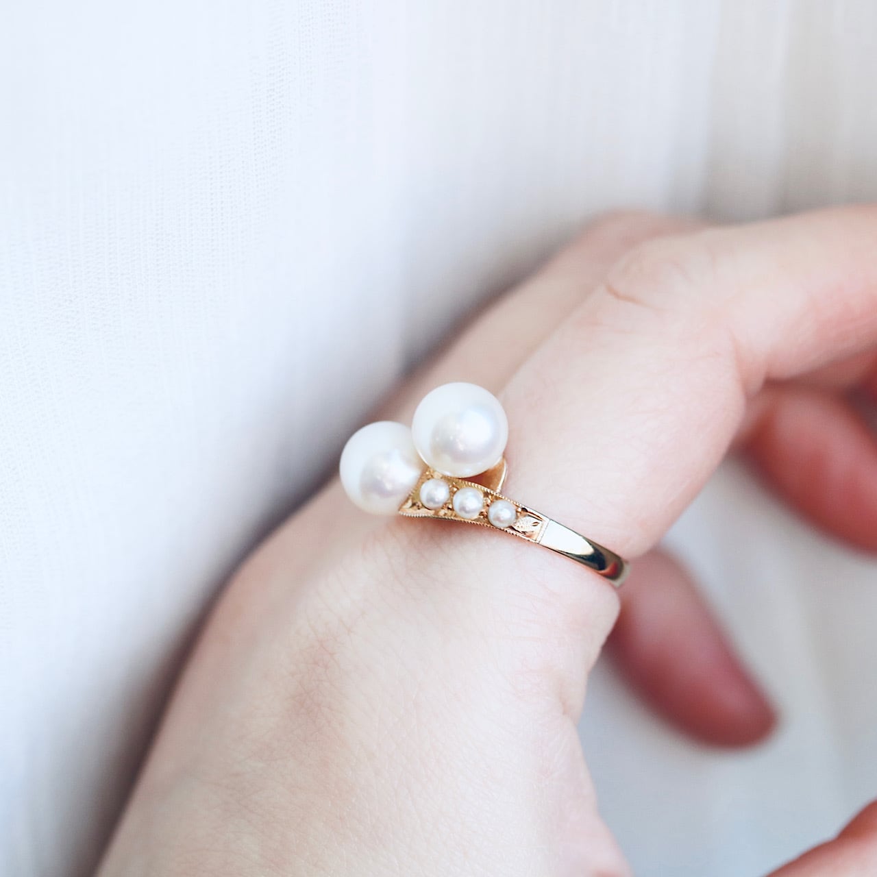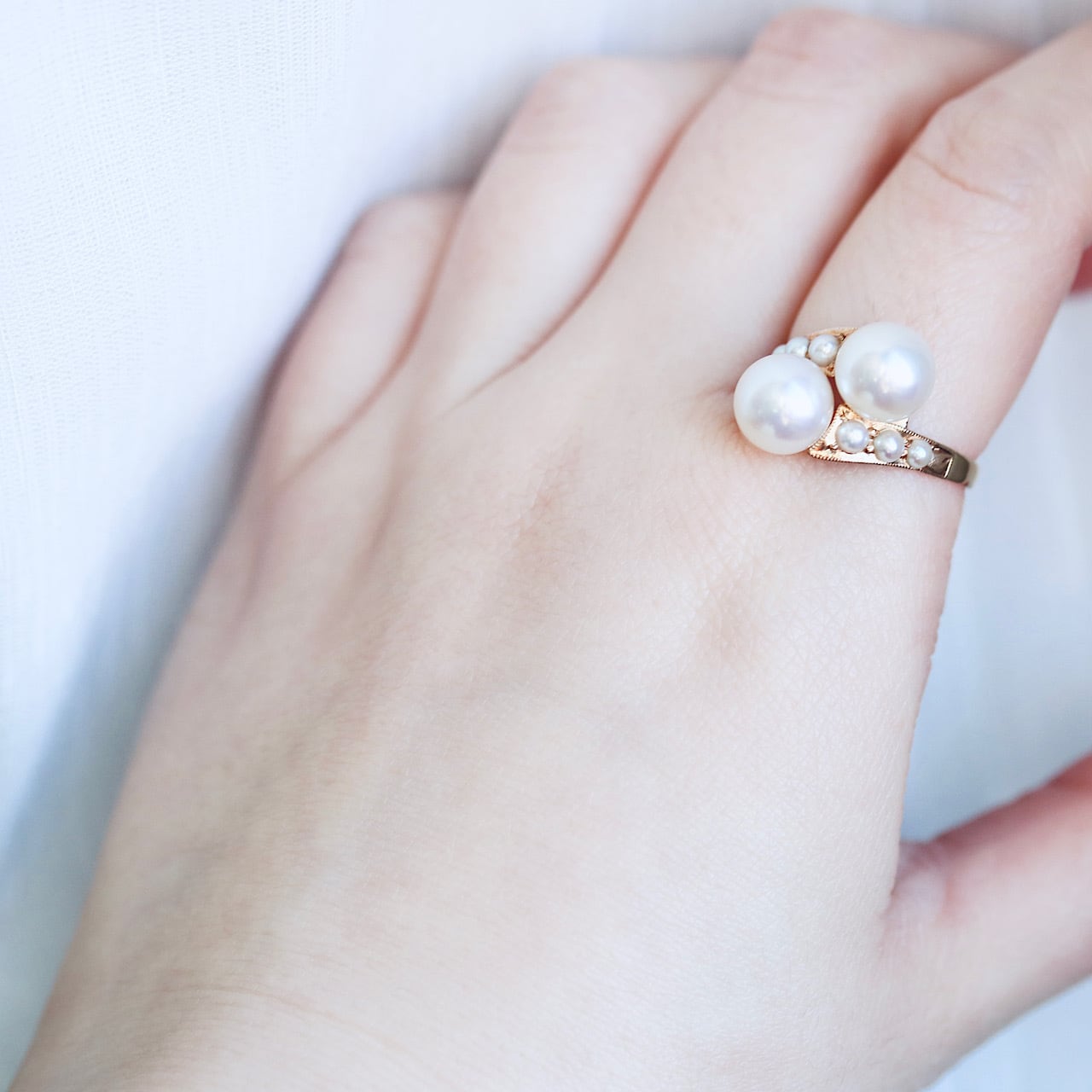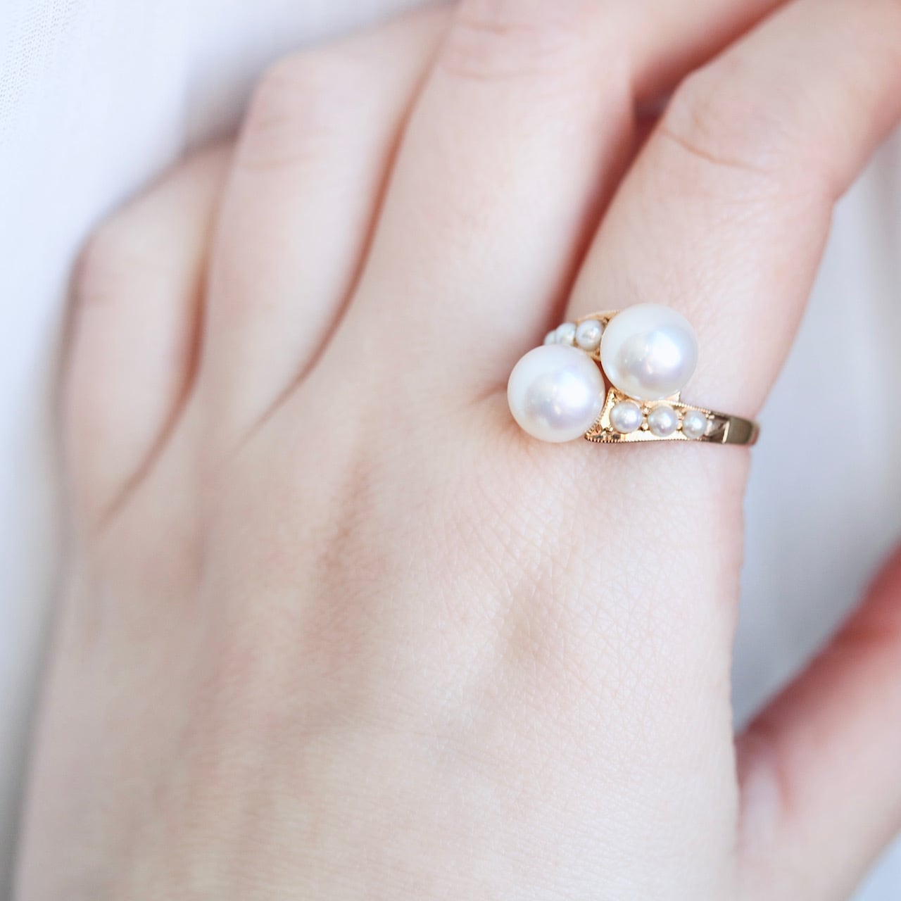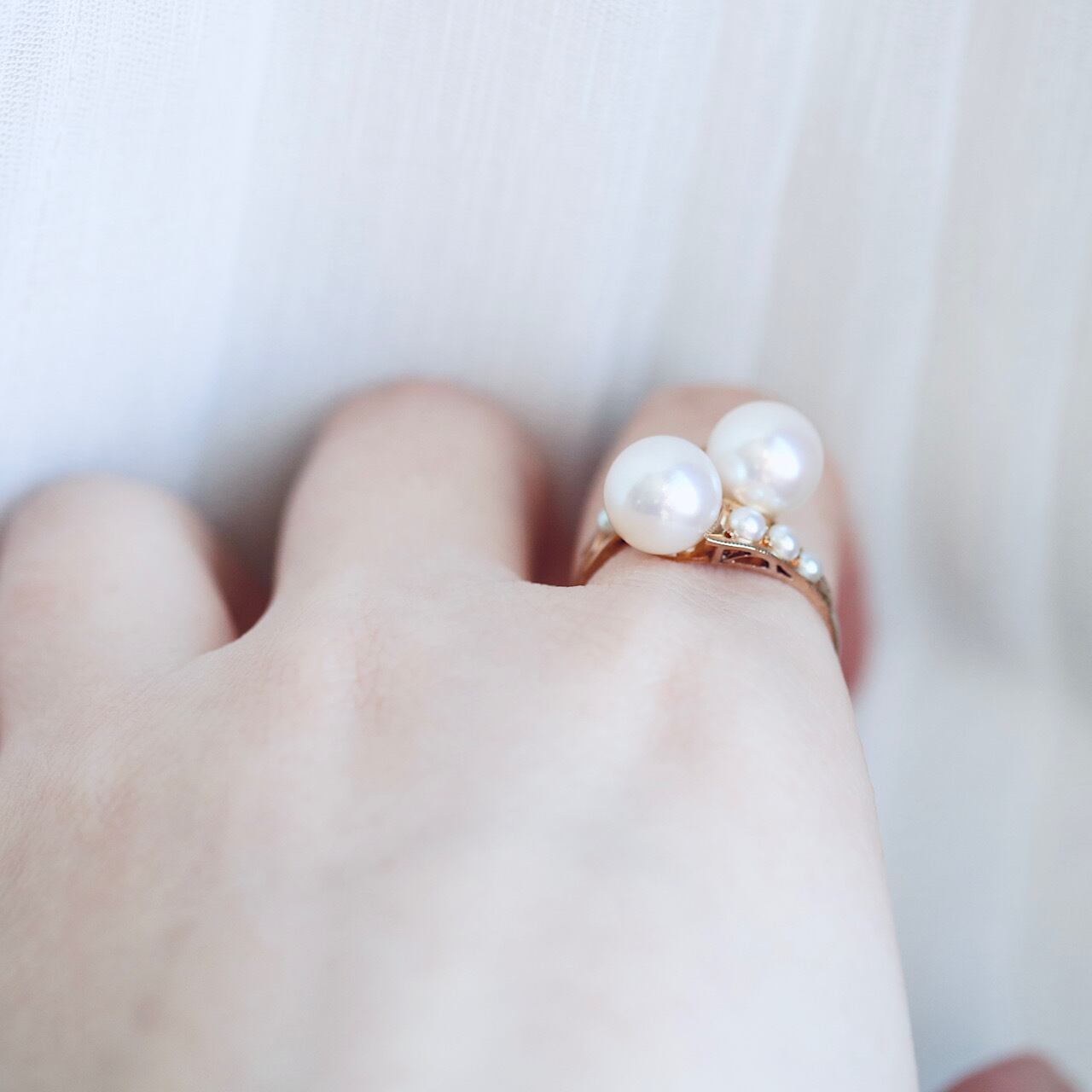 K18 あこや真珠&ベビーパール トワエモワ ヴィンテージリング。