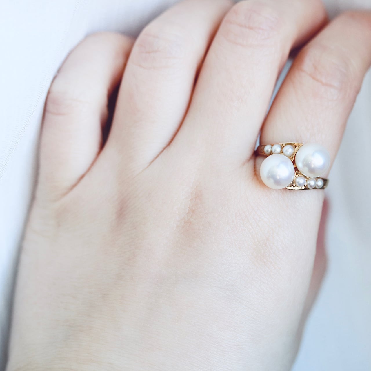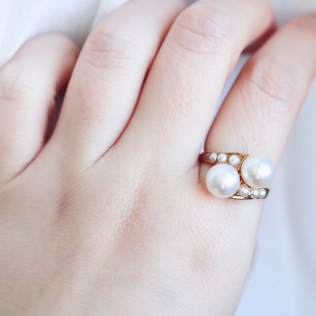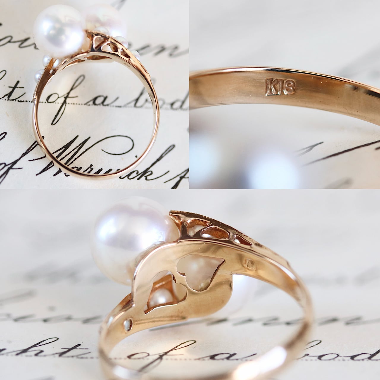 K18 あこや真珠&ベビーパール トワエモワ ヴィンテージリング。