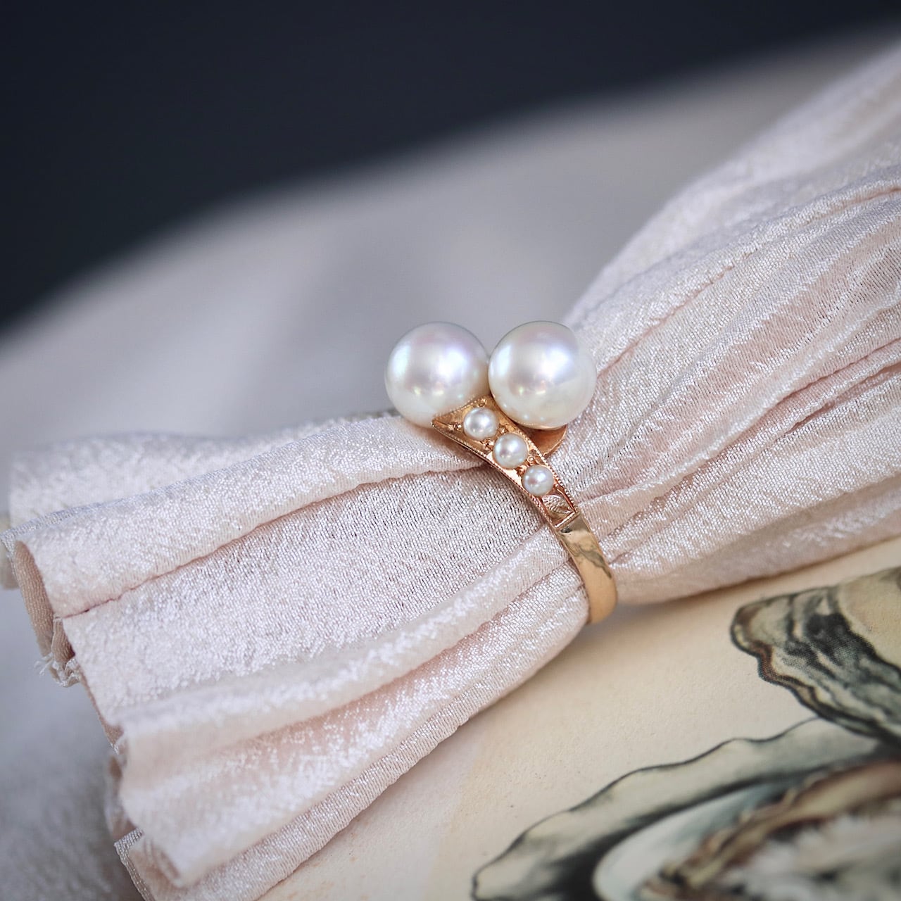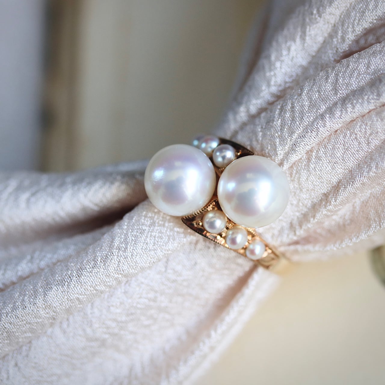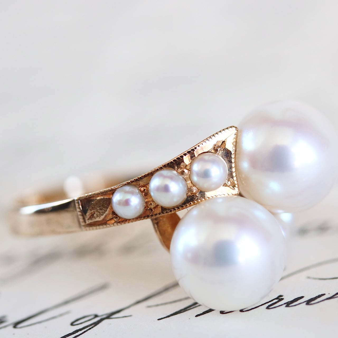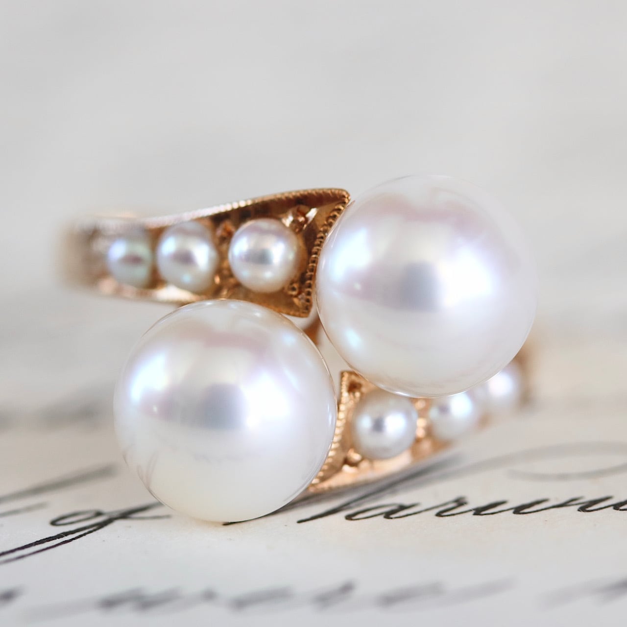 K18 あこや真珠&ベビーパール トワエモワ ヴィンテージリング。